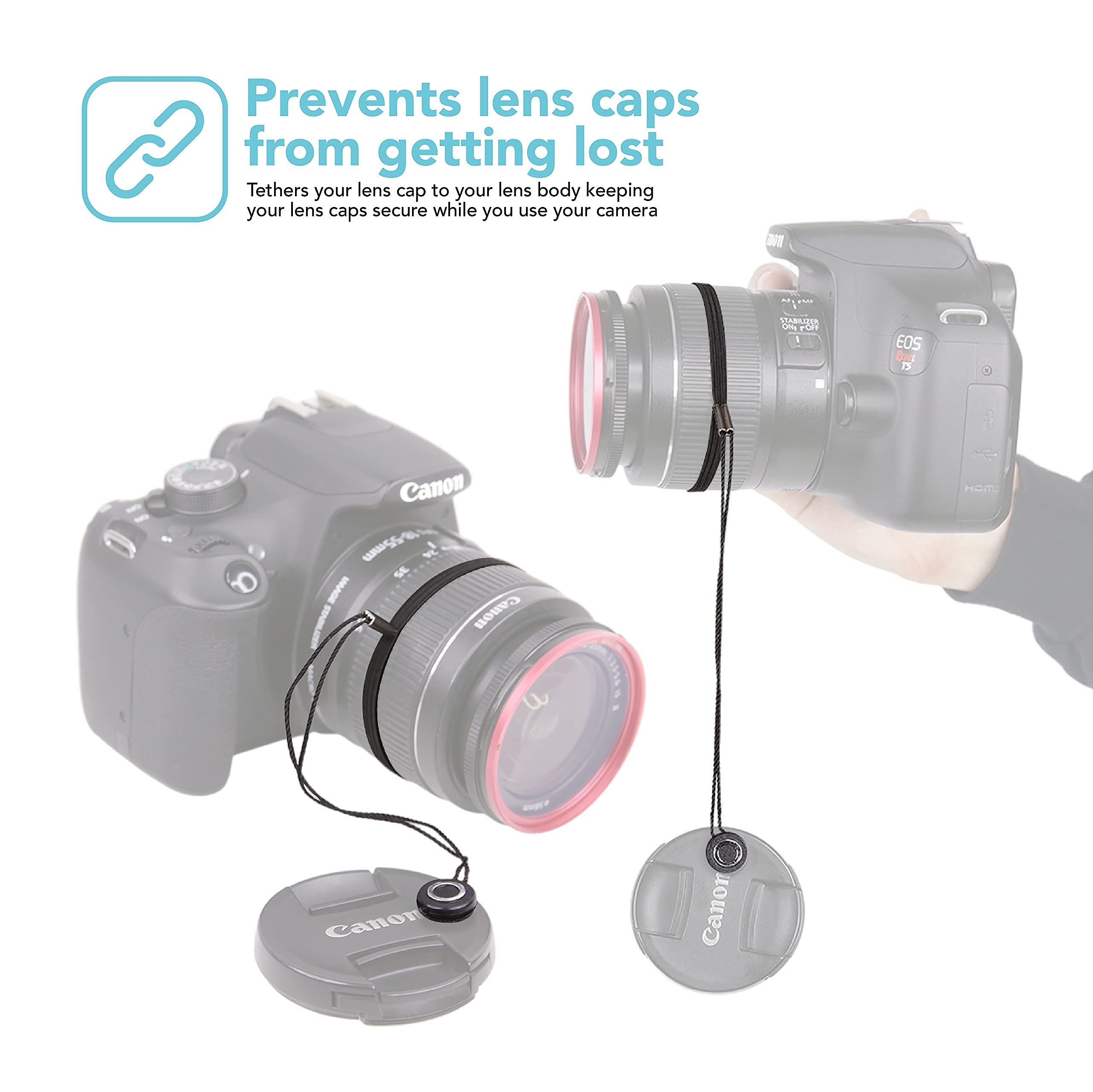 Foto&Tech Camera Lens Cap Keeper Holder with Elastic String Anti-Loss, Compatible with Canon Nikon Sony Panasonic Fujifilm Pentax Sigma DSLR SLR EVIL Mirrorless Cameras Video Cameras