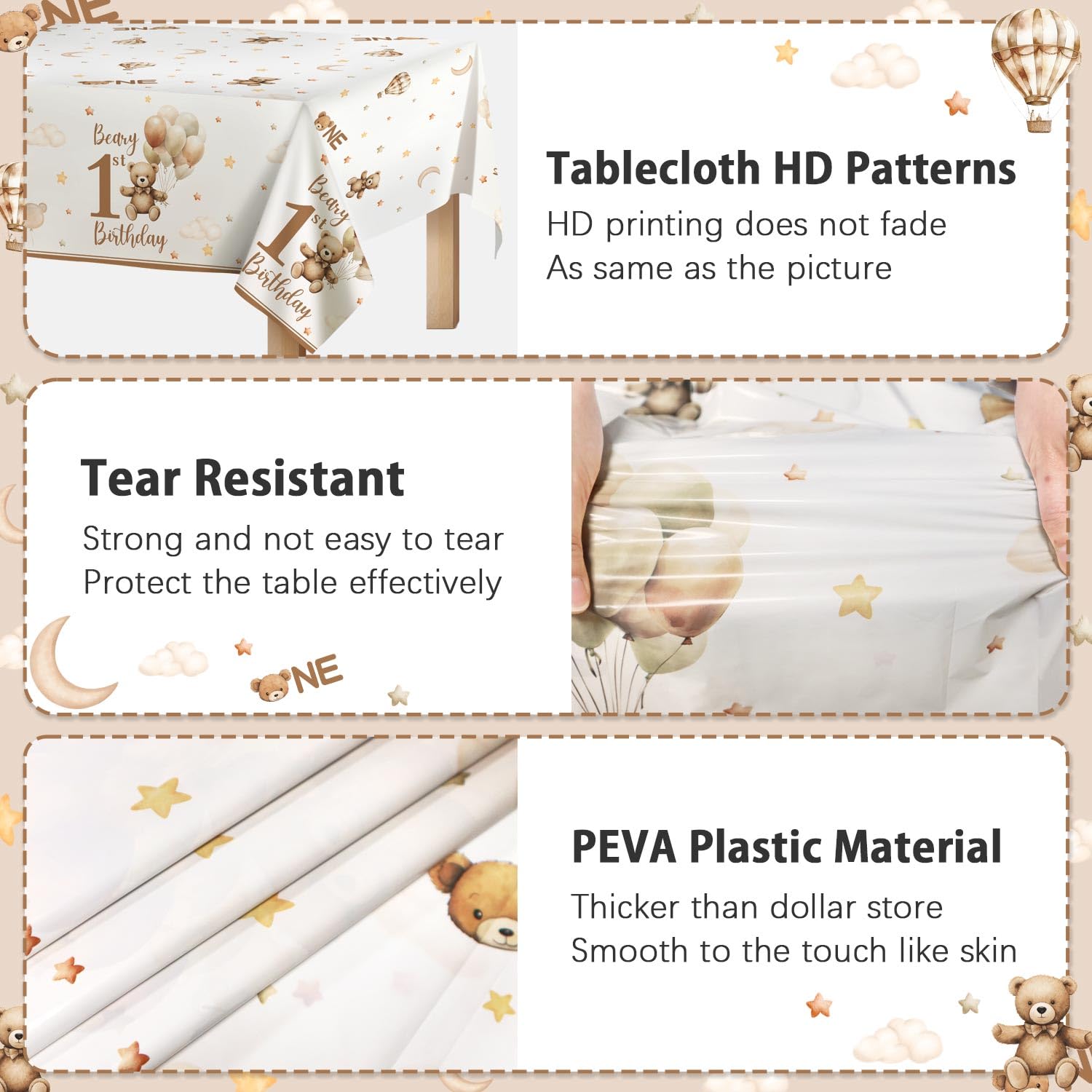 Vibrant and Soft: High-definition printing ensures vibrant, long-lasting colors. The tablecloths feel surprisingly soft and smooth, just like skin. Get ready for a truly "beary" cute first birthday party