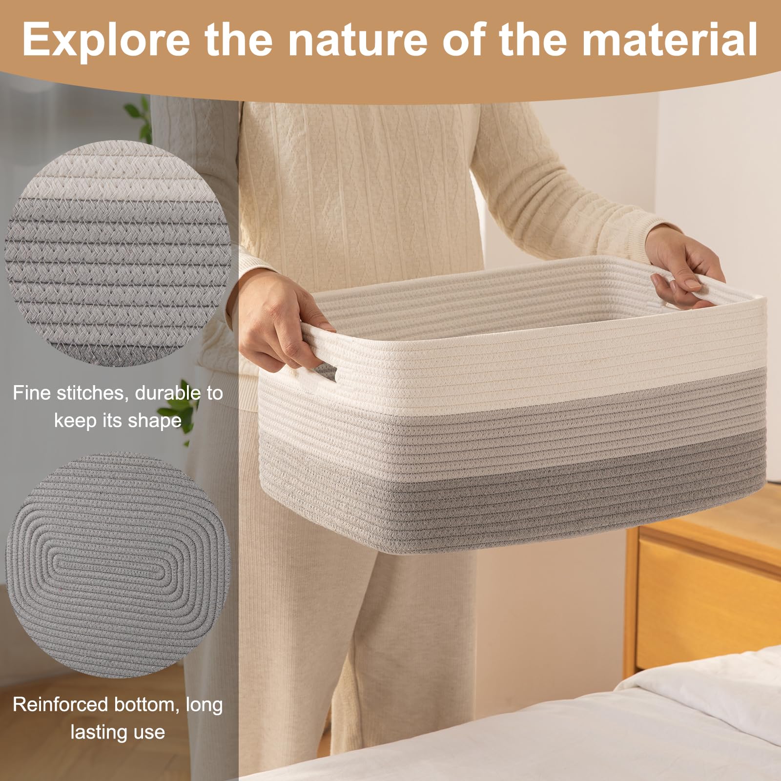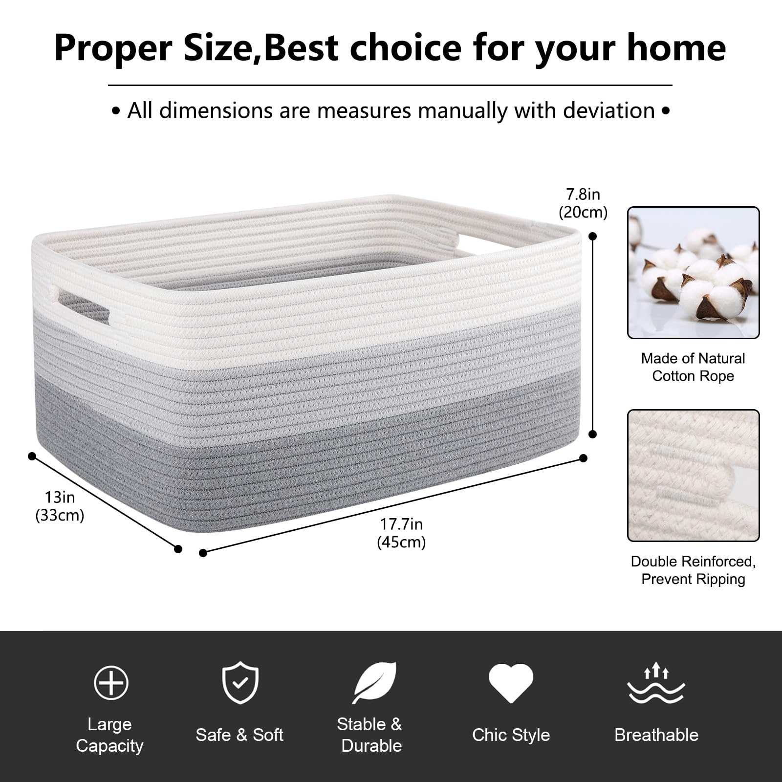 Soft and Durable: Hand-stitched from high-quality natural cotton rope. Our baskets are very soft and baby-friendly. Seamless design, with no odor or sharp edges, not easy to tear, Great for nurseries storage and closet organization