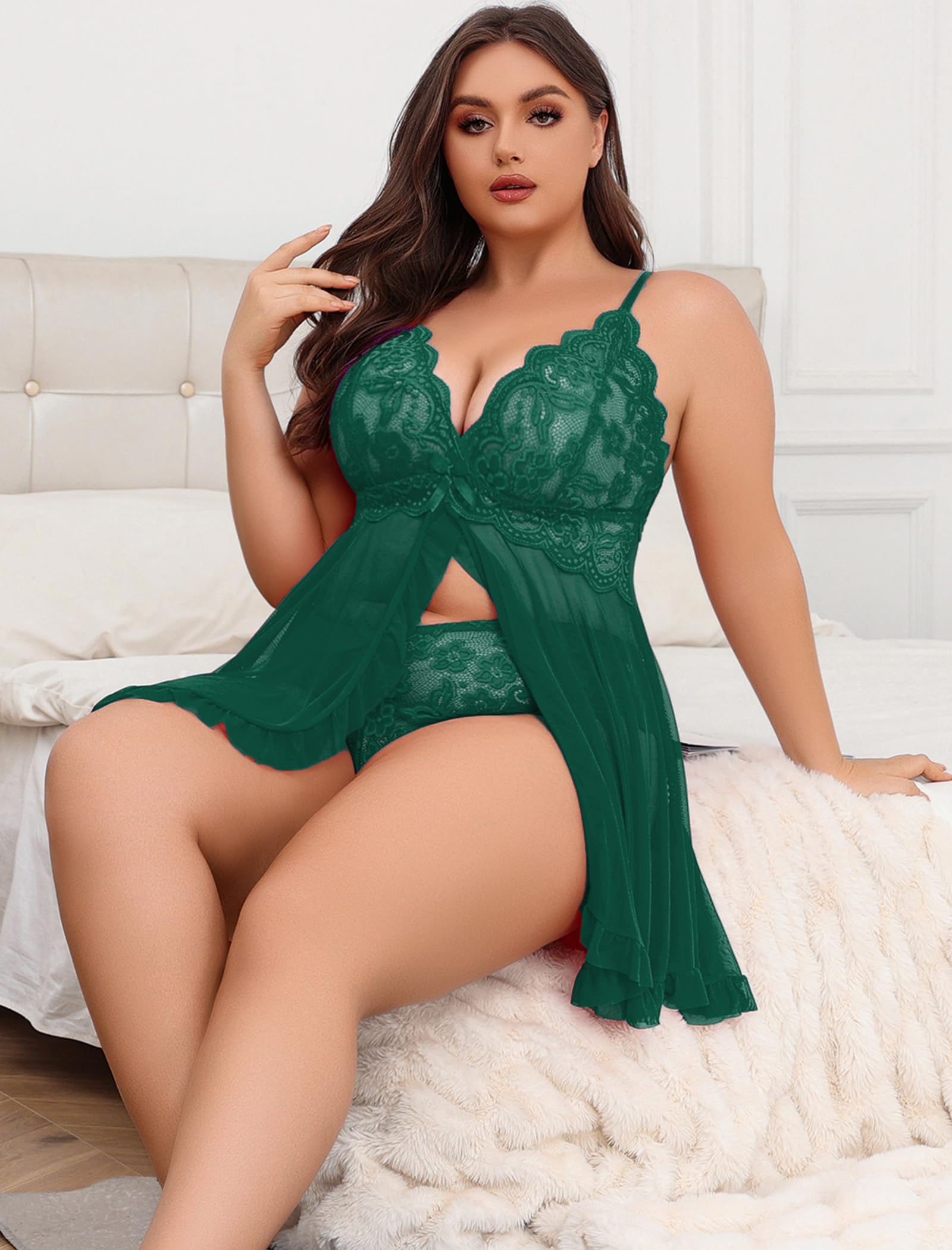 【Package Content】1 x Plus Size Lingerie Dress (No underwire)+ 1 x Women's Lace Panty.If you're not that busty of thick from the bottom I suggest you order your normal size. But if you are order a size bigger that for a perfect fit!