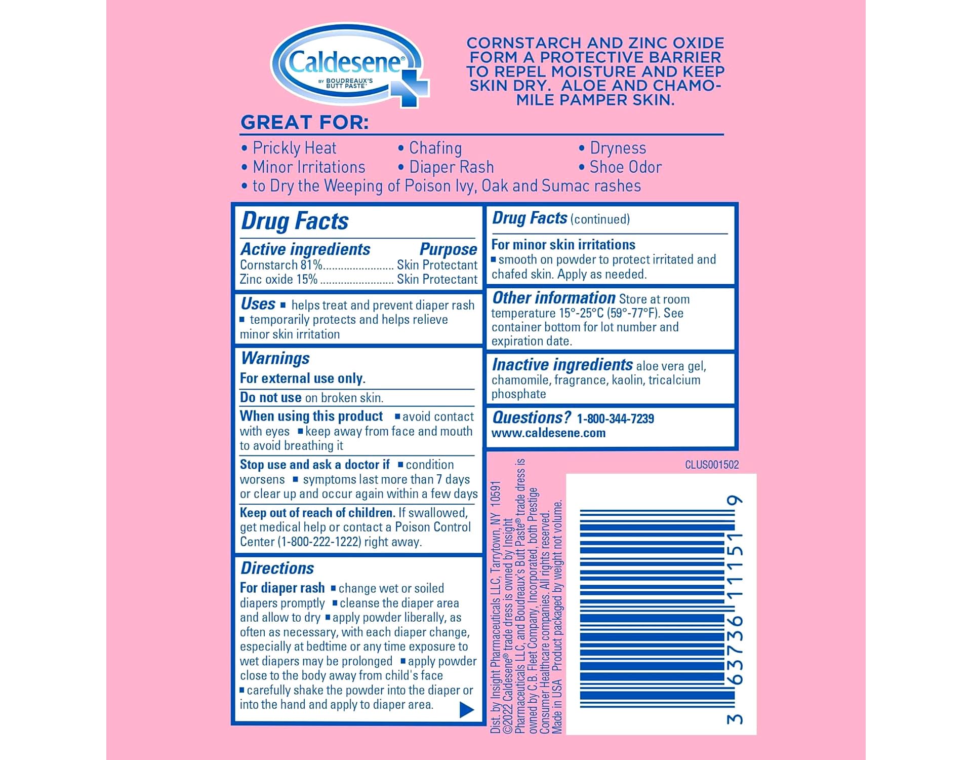 Caldesene Medicated Protecting Body Powder with Zinc Oxide and Cornstarch has been trusted for decades by parents to help prevent and treat diaper rash on their little ones and to prevent chafing and discomfort on themselves. Caldesene is a gentle body powder recognized as safe and effective by parents and doctors in treating diaper rash, prickly heat, chafing, minor skin irritations, shoe odor, and to dry the weeping of poison ivy, oak and sumac rash. That means that this talc-free powder is great for the whole family! Caldesene works as a body powder for women and a body powder for men to help prevent chafing and raw skin, making it perfect for hiking, running, traveling, and hot summer days. Caldesene Medicated Protecting Body Powder is free of talcum and made with cornstarch and zinc oxide to form a protective barrier to repel moisture and help keep skin dry. Avoid the odors and discomfort that come from sweat, exercise, or excess moisture with Caldesene Medicated Protecting Body Powder. Caldesene Medicated Protecting Body Powder works as a baby powder, too! Keep your baby comfortable all day long by incorporating into your routine as needed to prevent excess moisture in your baby diapers and to help protect sensitive skin against chafing. This medicated powder is free from talcum, dyes, parabens, and preservatives, so you can feel good about using this even on sensitive skin. Enhanced with aloe and chamomile, Caldesene soothes your family’s skin with regular use and seals out wetness to help protect against chafed skin. Pick up a 5 oz container of Caldesene Cornstarch Body Powder today!