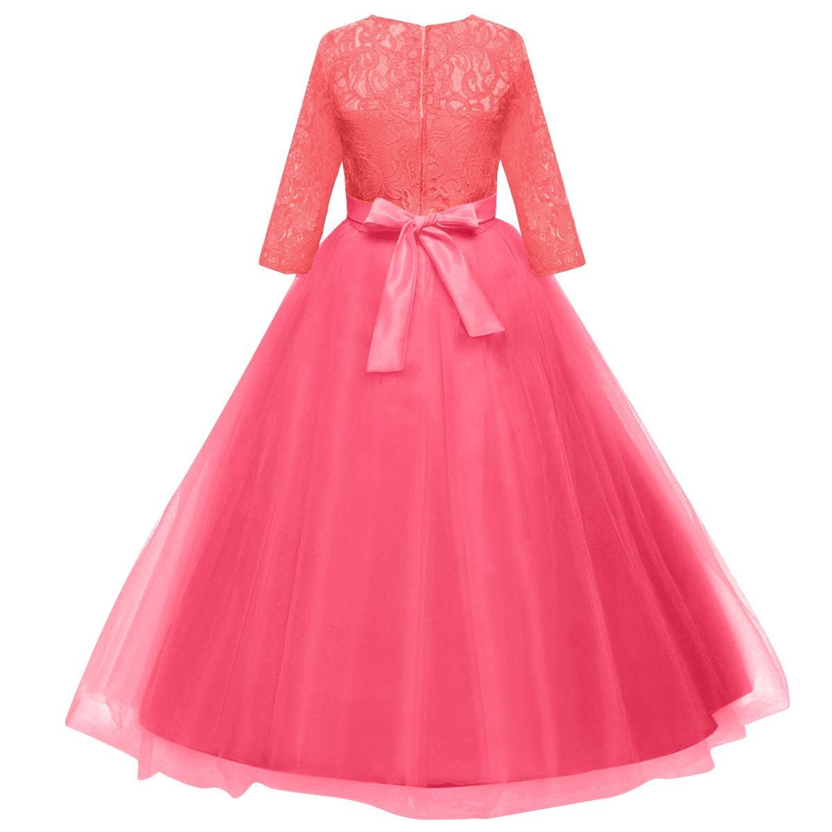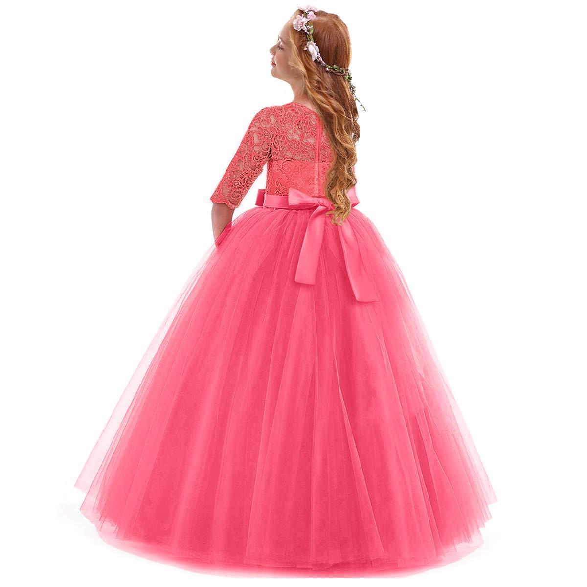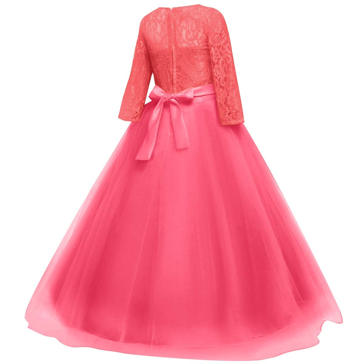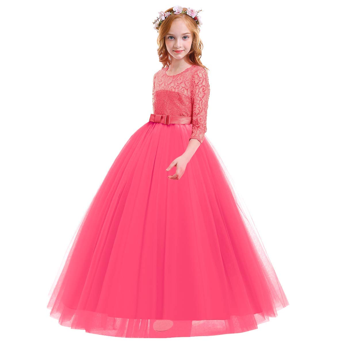 Design: Elegant flower girls dresses for weddings princess formal long maxi evening prom ball gown birthday party full length dress for kids junior girls, floral lace, hidden back zipper closure, featuring beautiful design. Your little princess will be thrilled with this gorgeous floral lace bow layered tulle tutu dress.