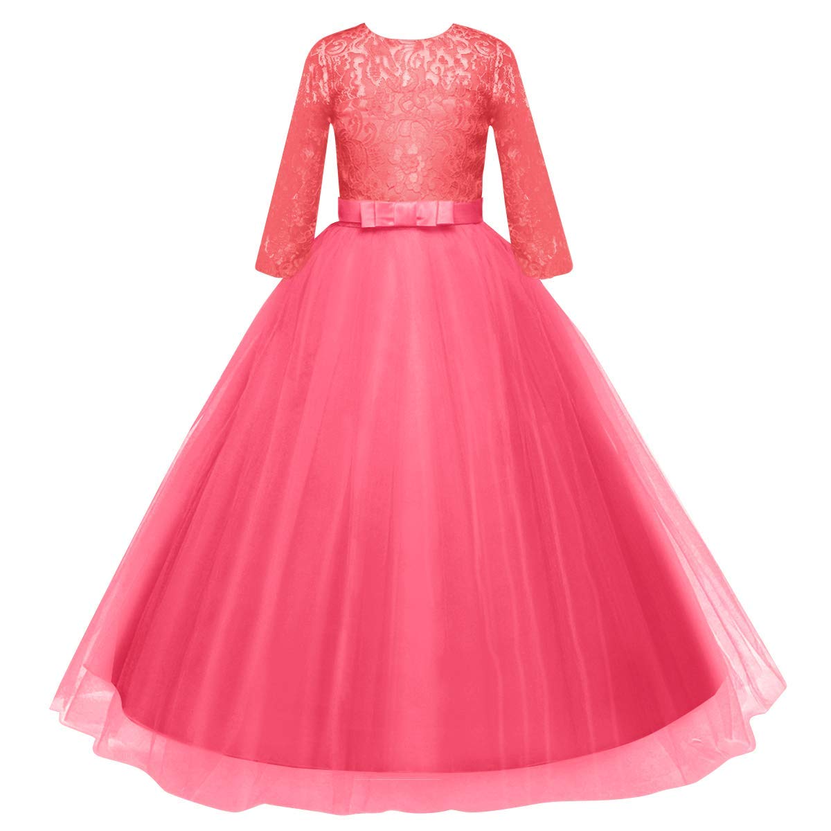 Size: Flower girls lace long maxi dress available for 2-14 Years child girl.Please refer to our size information in the below product description or the left picture for Detail Size Chart before ordering. Junior bridesmaid dresses for girls. Tulle lace layered dress with delicate flower and bow make your sweet princess to be the most graceful and shining girl in the crowd. Beautiful design features a chic style for your young baby and make your little fairy look so distinctive.