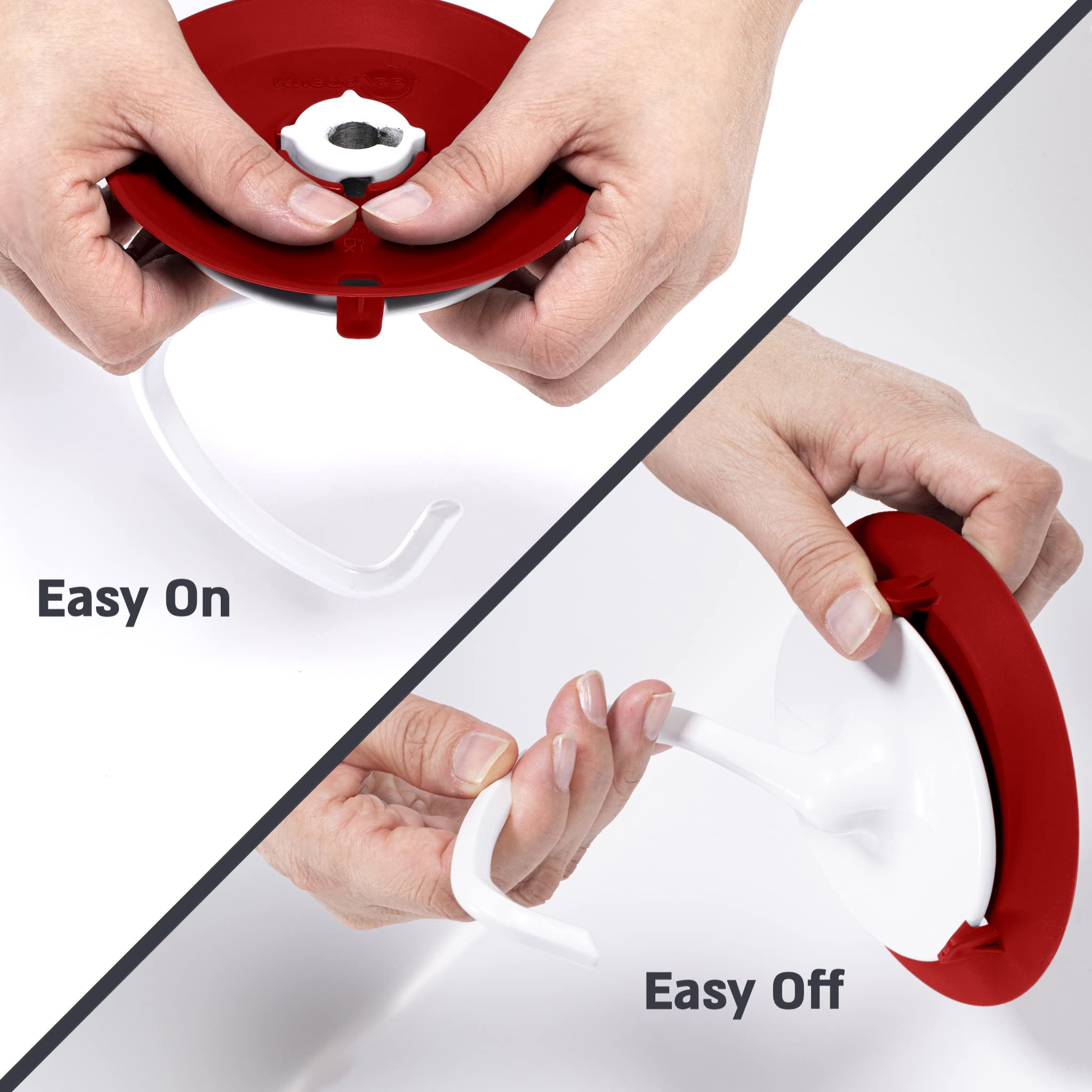 KneadAce Dough Hook Shield For Kitchen Aid - Prevents Your Dough from Climbing Up and Clogging Up Your Mixer – Mess Free Mixer Accessory Compatible With Most KitchenAid C Shape Dough Hooks (Red)