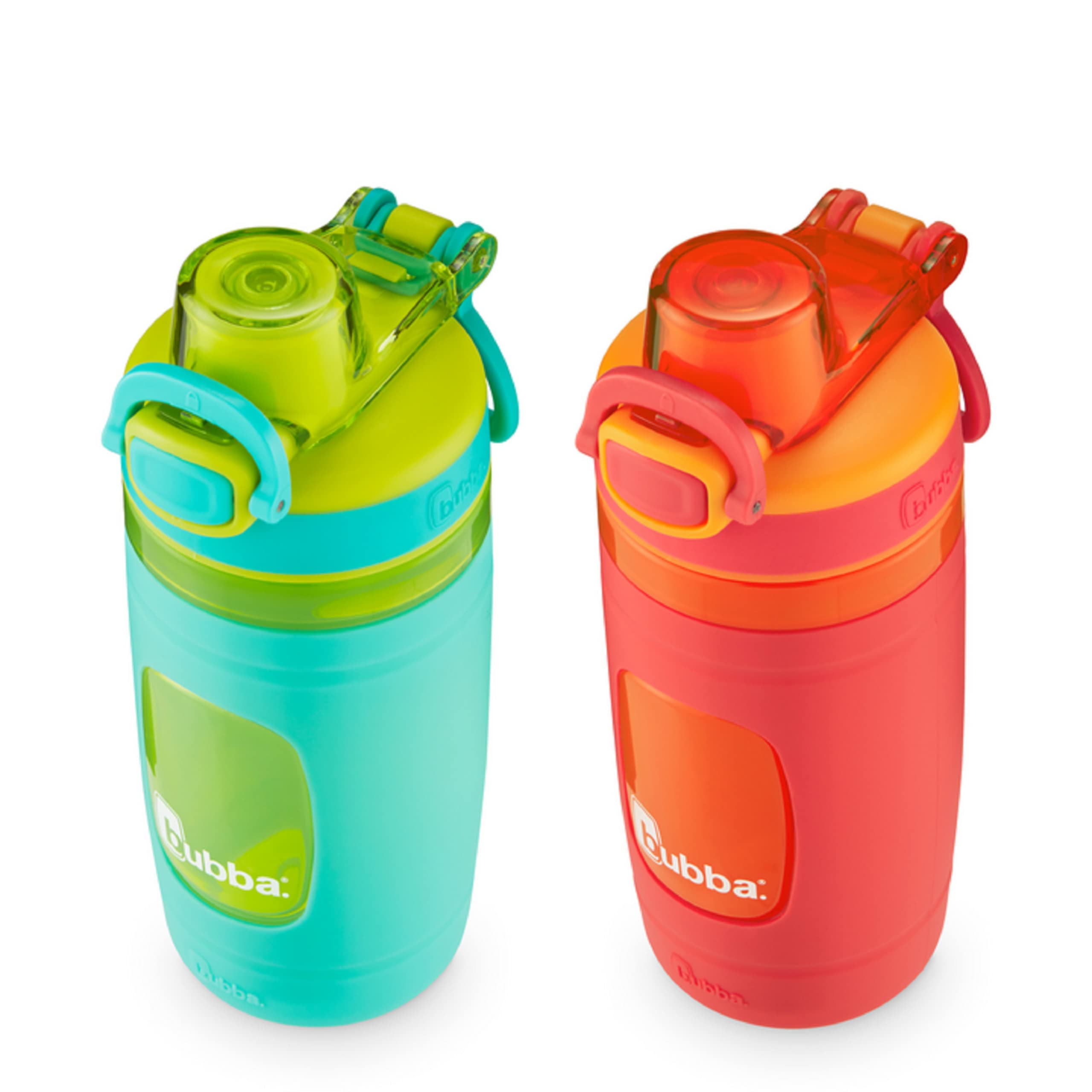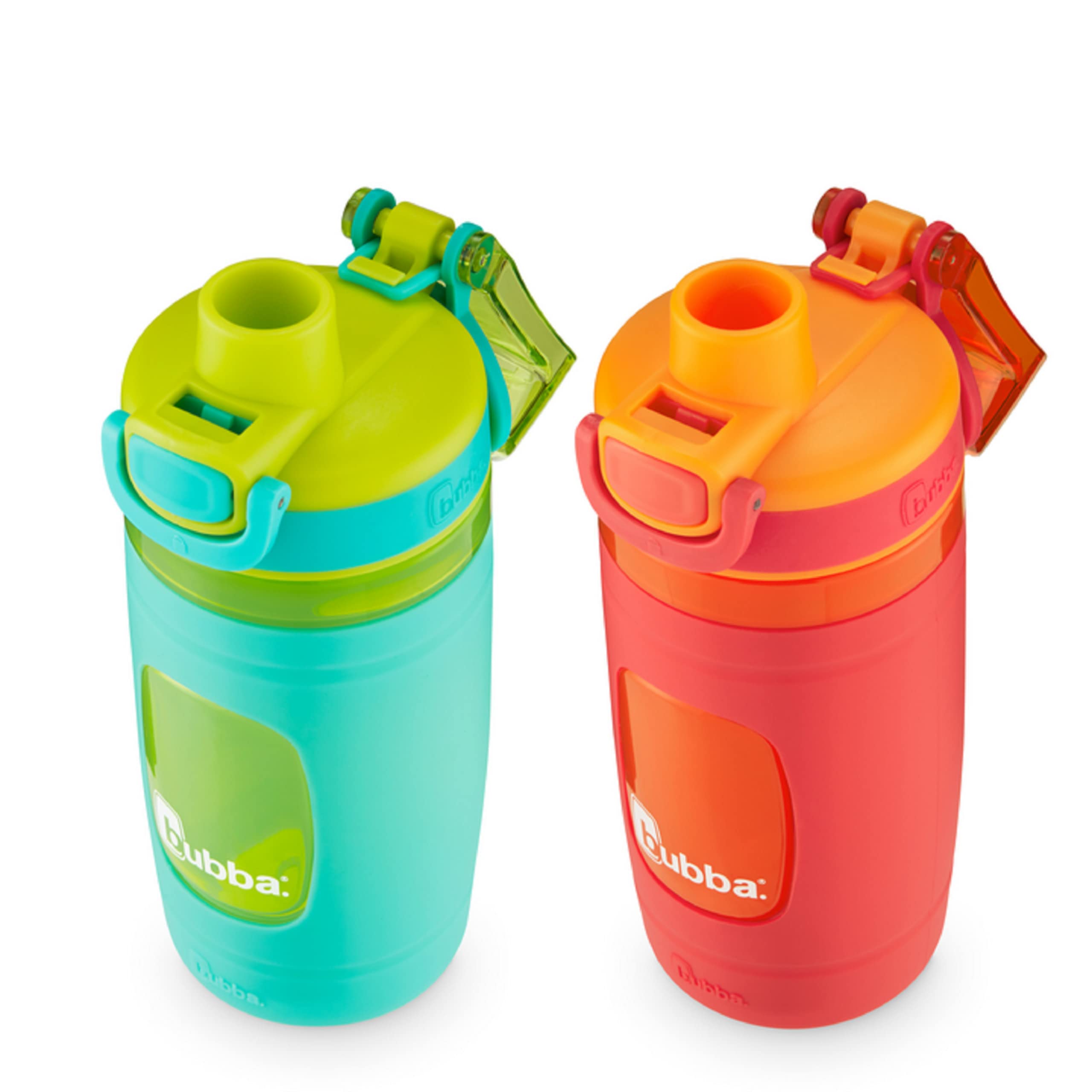 Teach your kids good hydration habits with the bubba Flo Kids Water Bottle with Silicone Sleeve, 16 oz. It features a leak-proof lid and a handy button lock to put a stop to accidental openings, keeping the inside of your car safe from spills. With a high-flow chug lid, kids can quickly hydrate without missing their turn on the monkey bars. A built-in spout cover keeps out dirt. This sturdy water bottle is made of BPA-free plastic. In addition to keeping drinks cold longer, the easy-to-grip silicone sleeve reduces condensation and includes a see-through window so you can track liquid consumption. The sleeve comes off, so throw lid and body onto the top rack of your dishwasher for no-fuss cleaning. Rest assured, your bubba is guaranteed for life. For ages 3 and up.