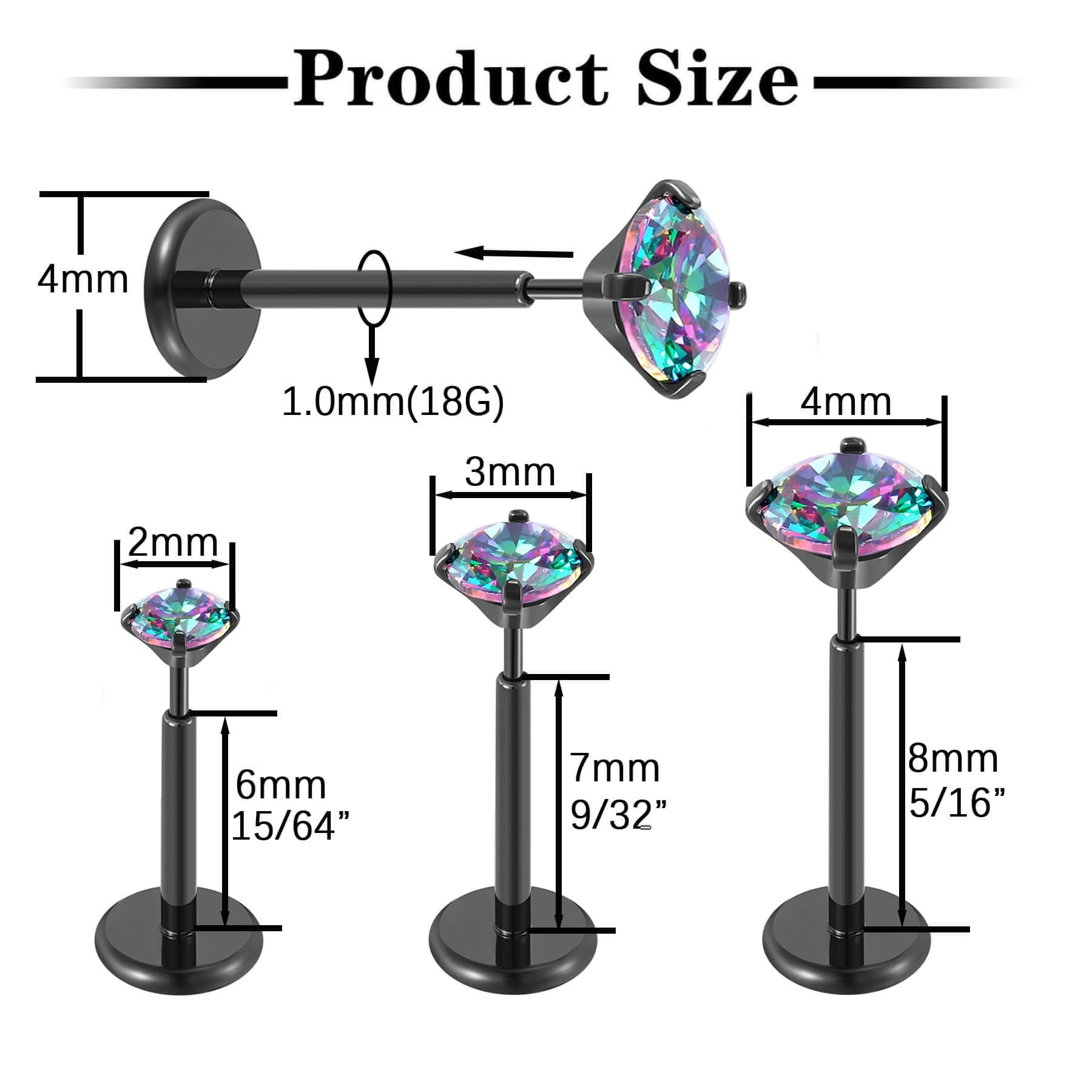❥Earring Stud Size❥20G, bar length: 6/7/8mm, CZ dia.: 2/3/4mm.Each bar and top CZ can be switched at will, you can wear different parts on different occasions.