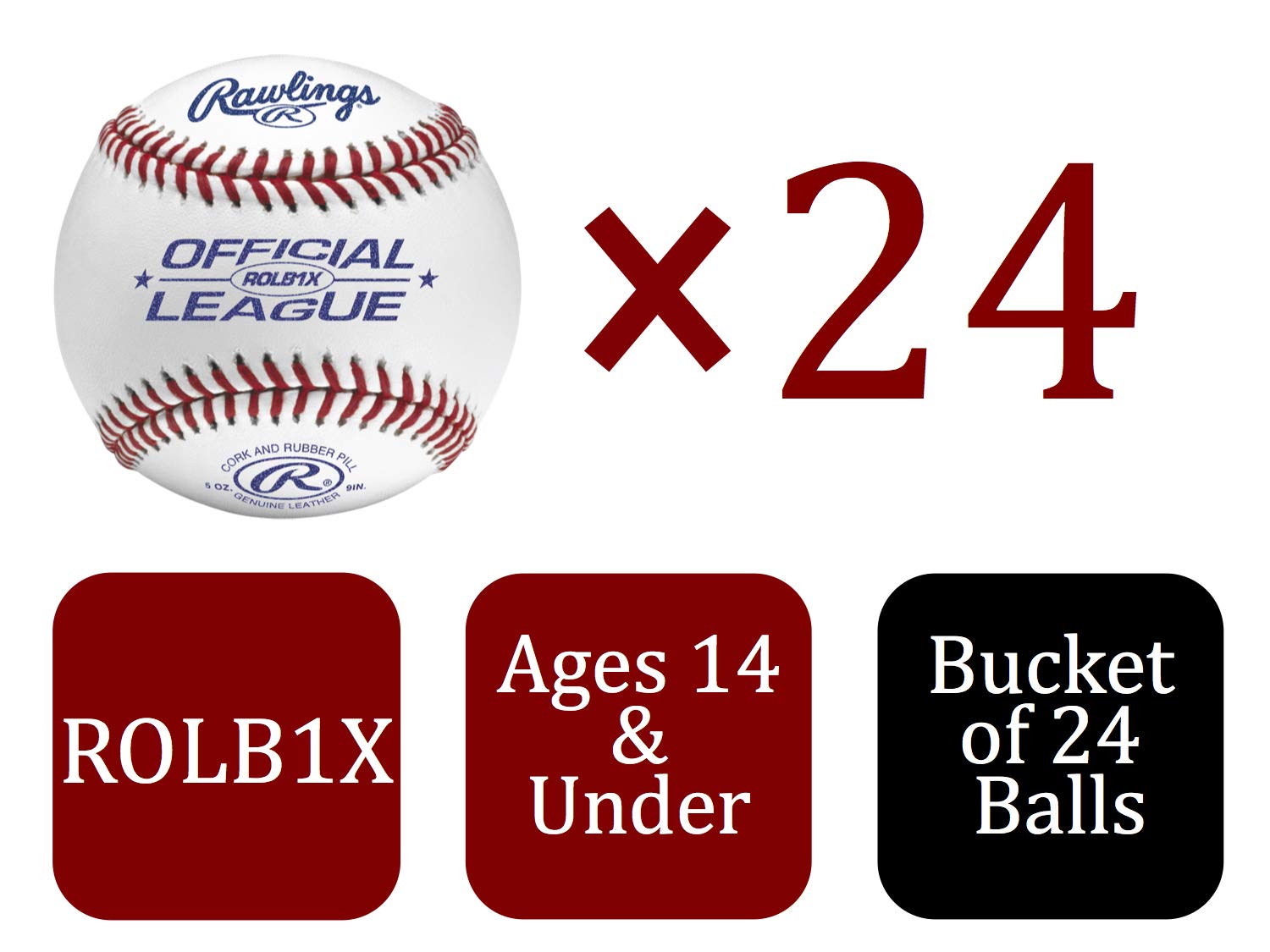 DESIGNED FOR RECREATIONAL USE: This bucket comes with 24 ROLB1X Official League baseballs