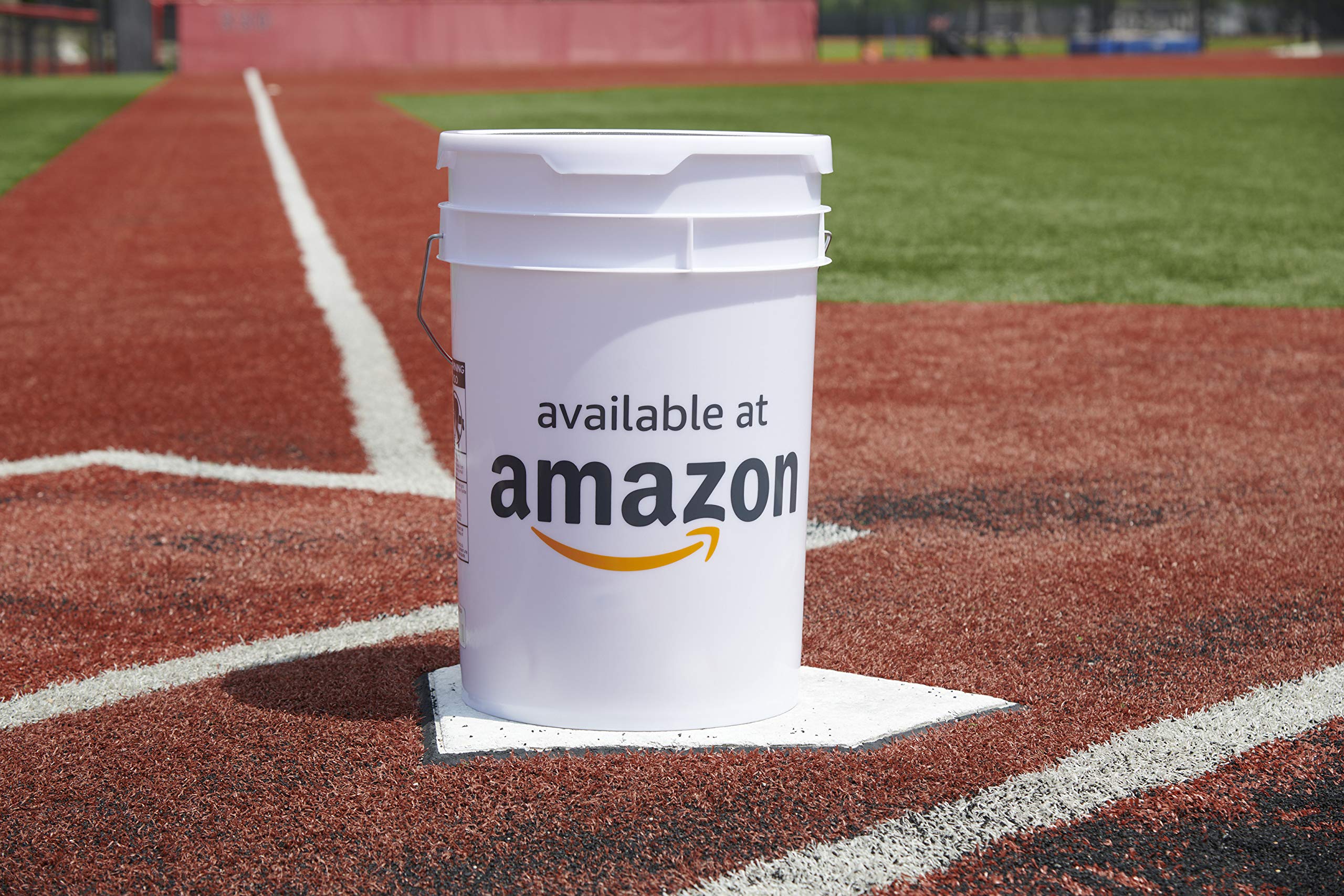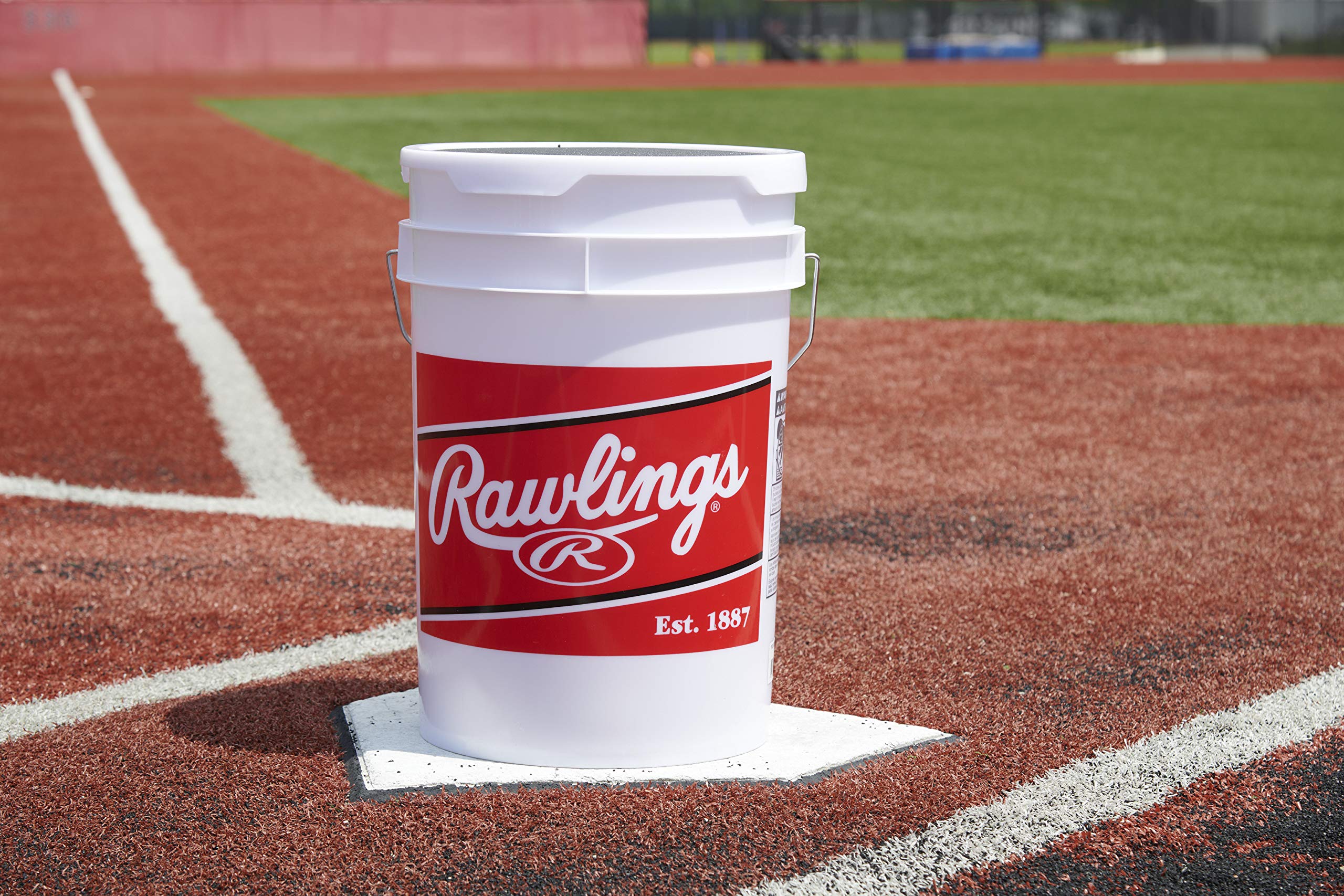 CONVENIENT TRANSPORT: Provided by the white 6-gallon durable plastic bucket that has a cushioned snap-on lid that can be used as a seat for coaches or catchers during pitching practice or between turns in the batting cage