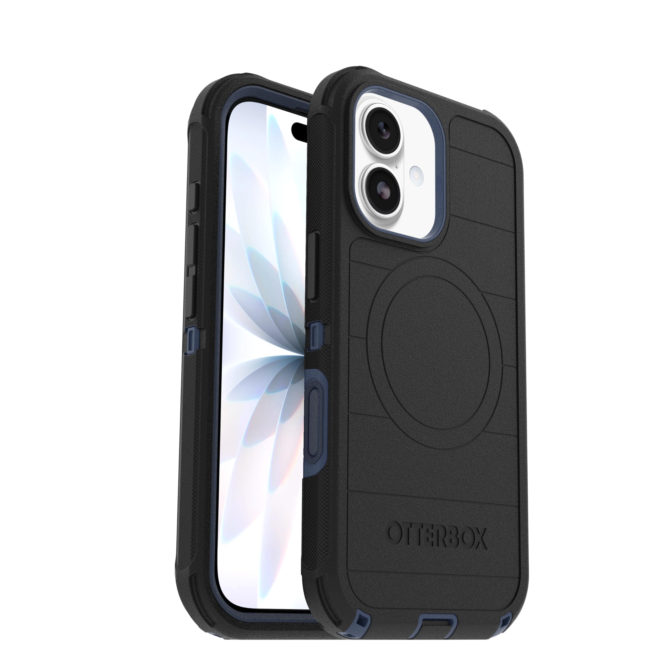OtterBox iPhone 17 (Only) - Defender Series Case - Black Chateau (Black& Blue) - Snaps on MagSafe - Tough - Rugged & Durable For intense drop defenses, go with Defender Series Pro, our toughest MagSafe compatible iPhone 17 case yet. It's equipped with corners that absorb shock, grippy texturing, MagSafe compatibility and a built-in Camera Control button. FEATURES: Tri-layer defense keeps your phone stable and secure against bumps and drops Raised edges protect camera + screen Port covers block dust and dirt Textured all over for peak grip Built-in anchors let you connect phone straps and charms Built-in magnets work flawlessly with MagSafe accessories Equipped with an integrated Camera Control button for seamless interaction — swipe, click, capture and tap into Apple's visual intelligence fast Free holster available (post purchase) — clips to belts or bags and doubles as a handsfree kickstand WHAT'S IN THE BOX: OtterBox Defender Series Case ("Case Only: - Belt Clip Holster Not Included) COMPATIBILITY: iPhone 17 (Only - Not Compatible with iPhone 17 Air/17 Pro/17 Pro Max)
