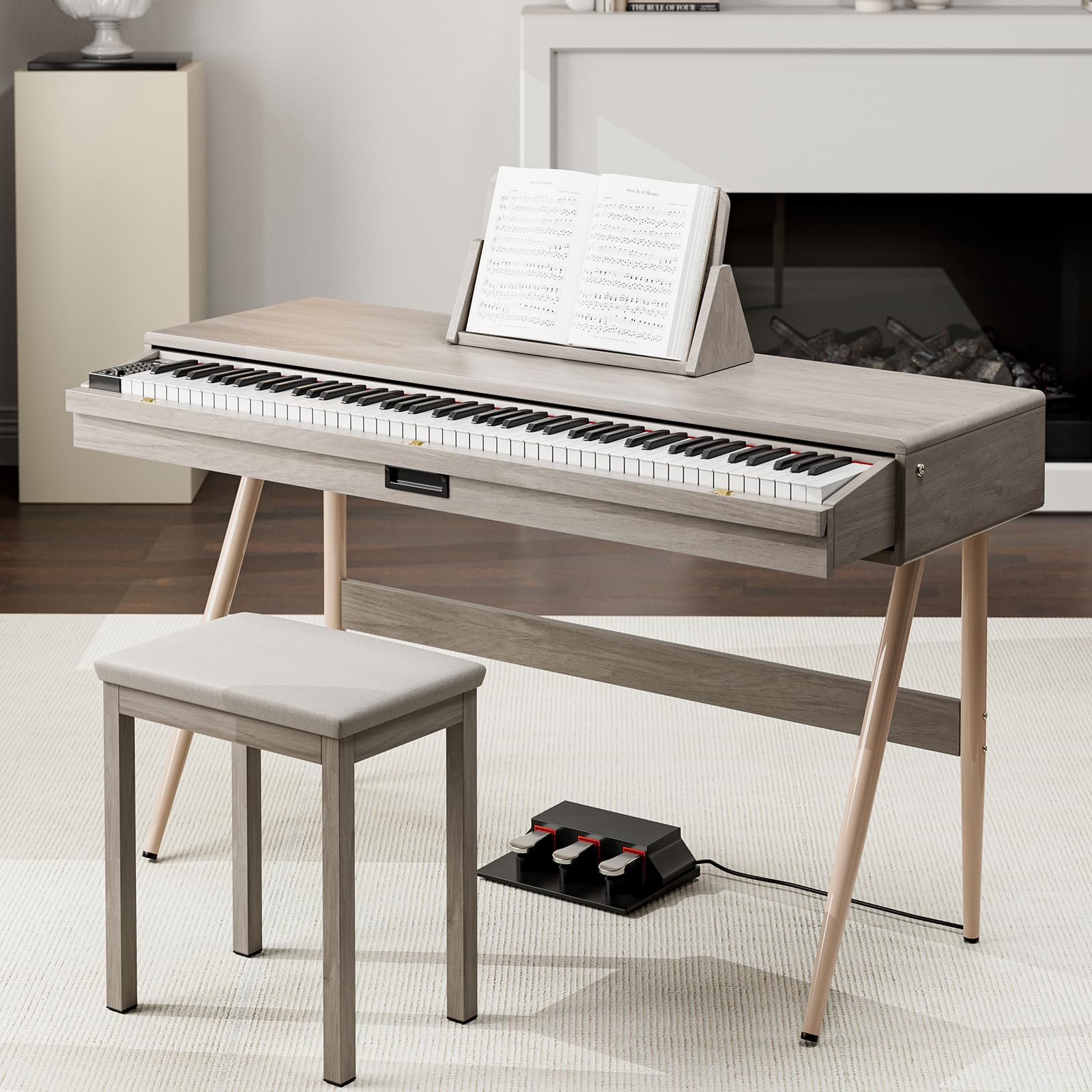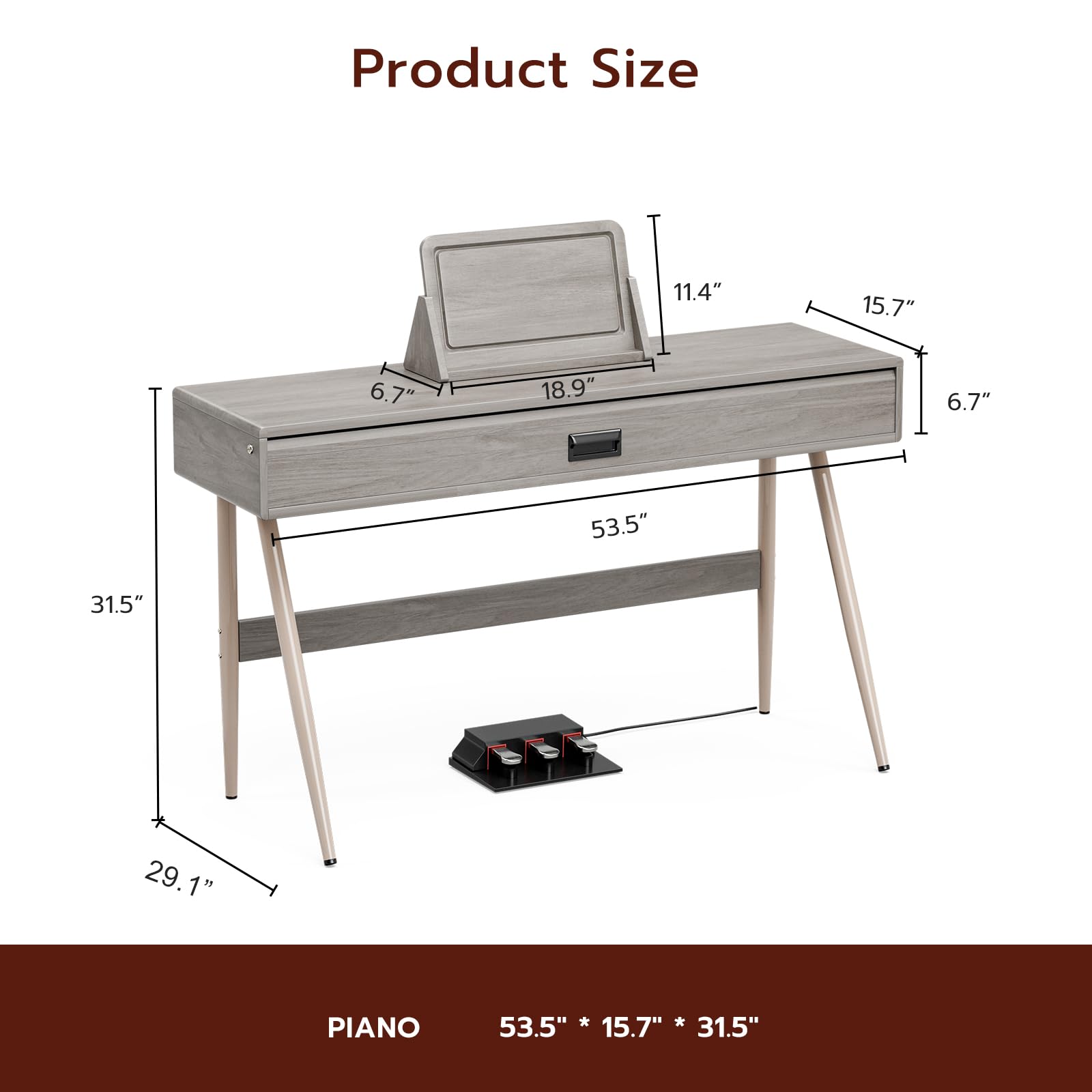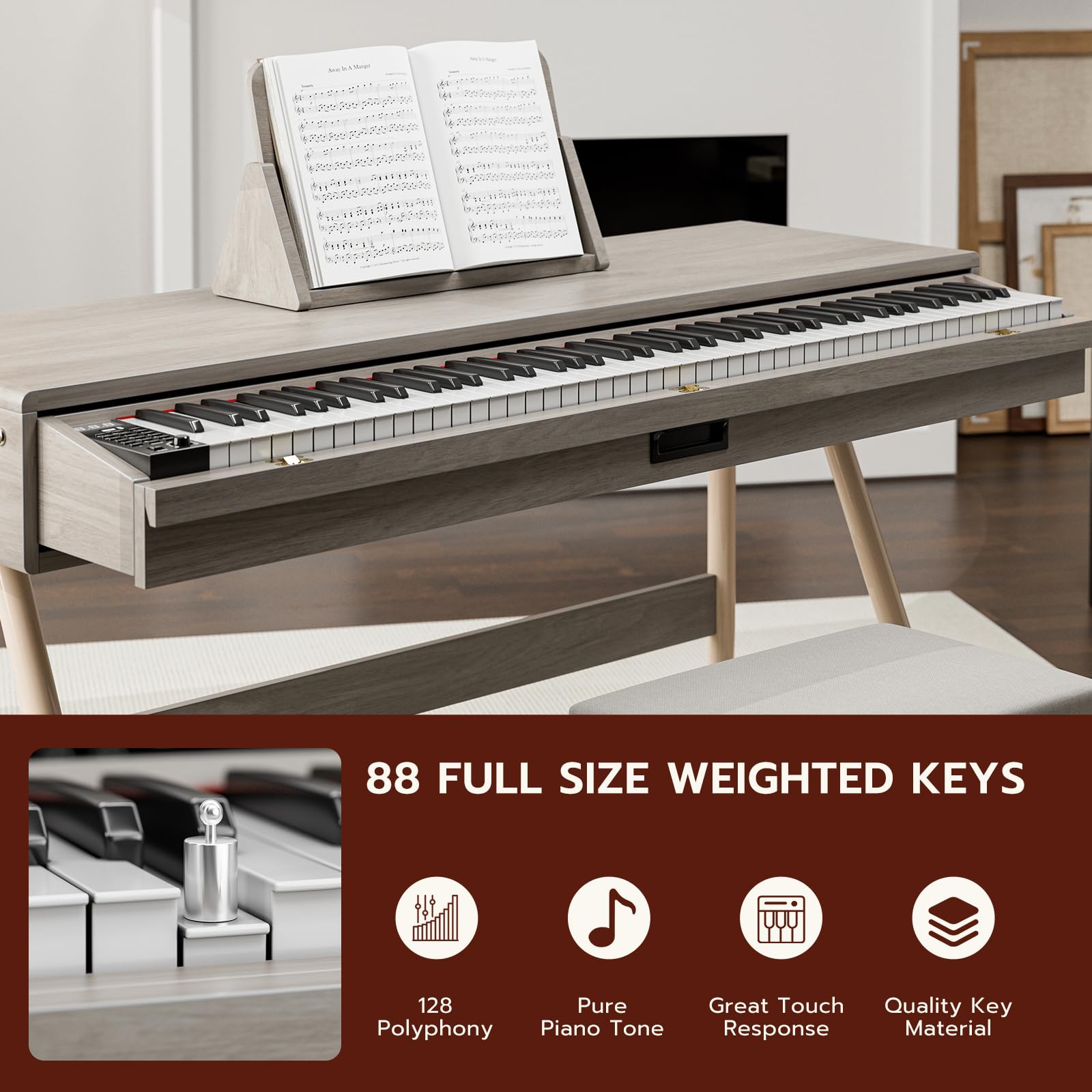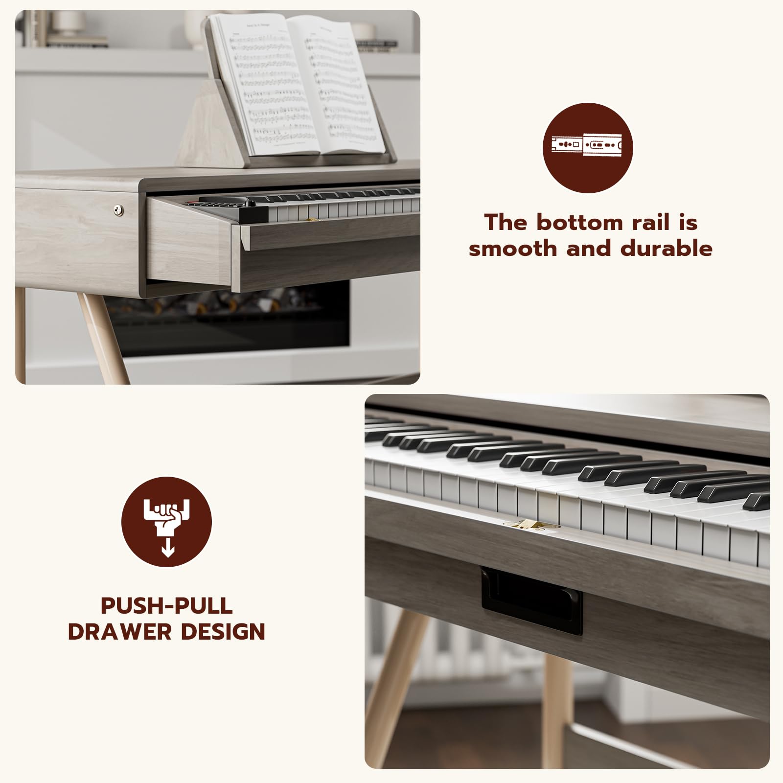 Detachable Music Stand - Piano players can take out the detachable music stand when needed, and can store it as a desk at any time when not needed. The music stand can be flipped over and used as a dressing table with a mirror.