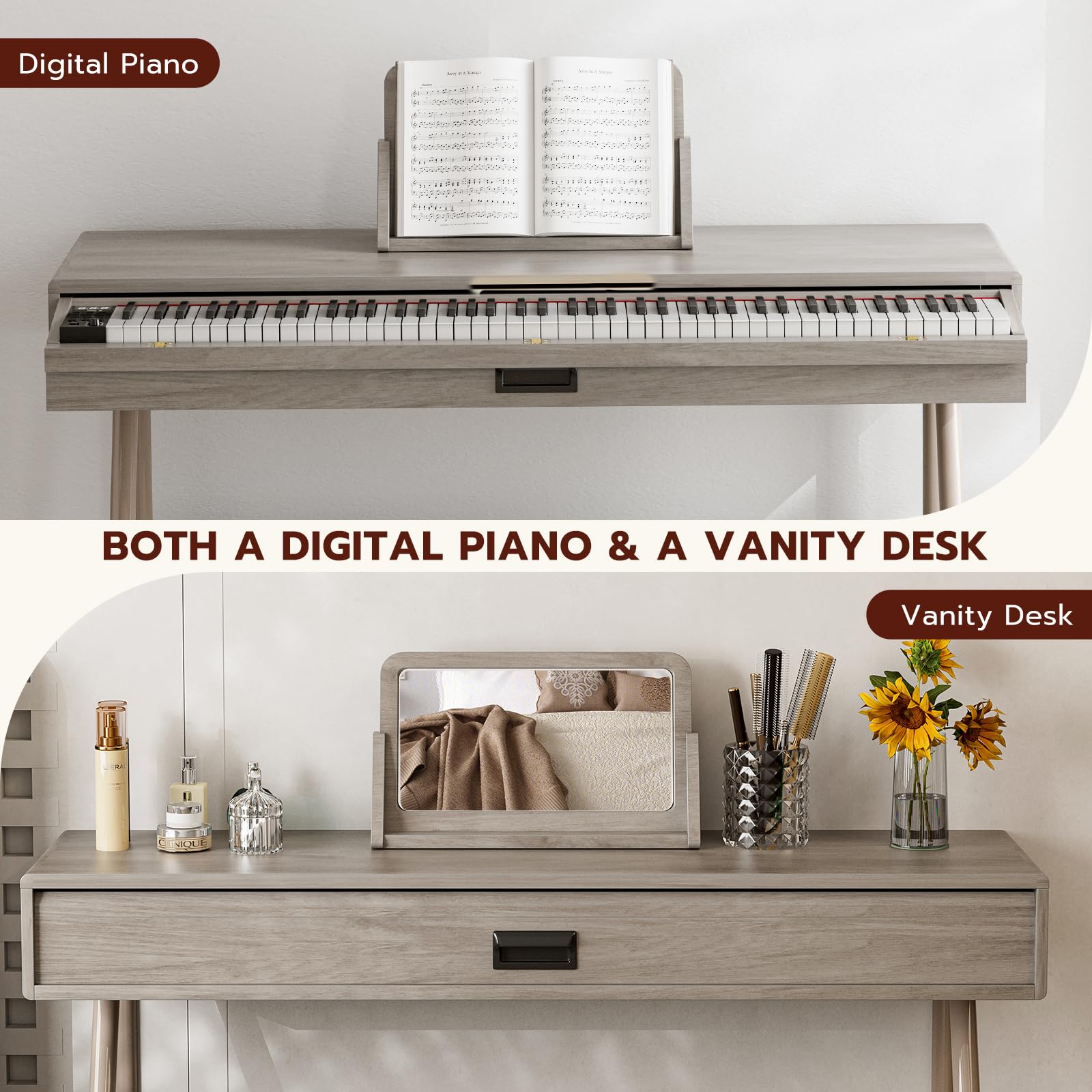 3 IN 1 Digital Piano - It can be played as a piano, turned into a desk for studying and working, and also turned into a dressing table with a dressing mirror