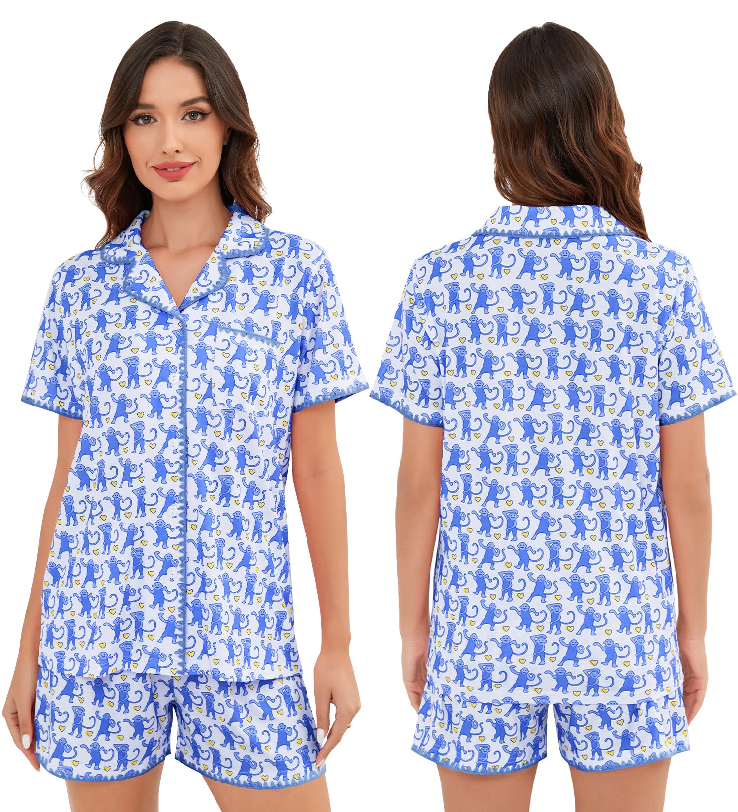 Pajama Tops: Short sleeve pajamas with notched collar, button front pajama shirt and convenient chest pocket for effortless style and convenience; To top it off, we added eye-catching hand-whipped piping on both the top and shorts for a cute, stylish look