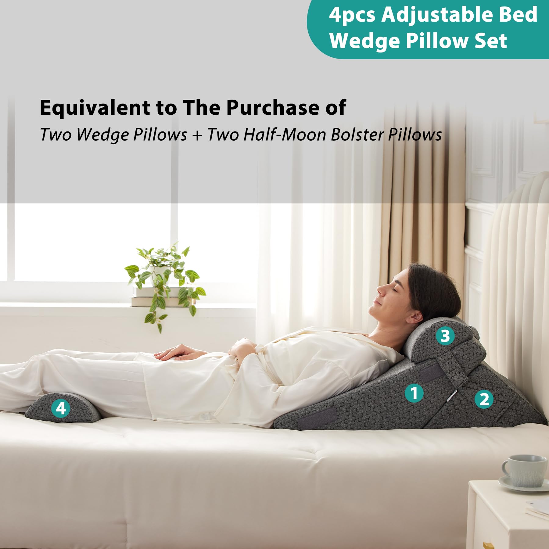 Comprehensive Body Support: With four pillows, find optimal support for your entire body. Bid farewell to backaches, hip pain, knee pain, and poor circulation. Ideal for post-surgery recovery, it also alleviates lower back pain, snoring and acid reflux, promoting both comfort and health.