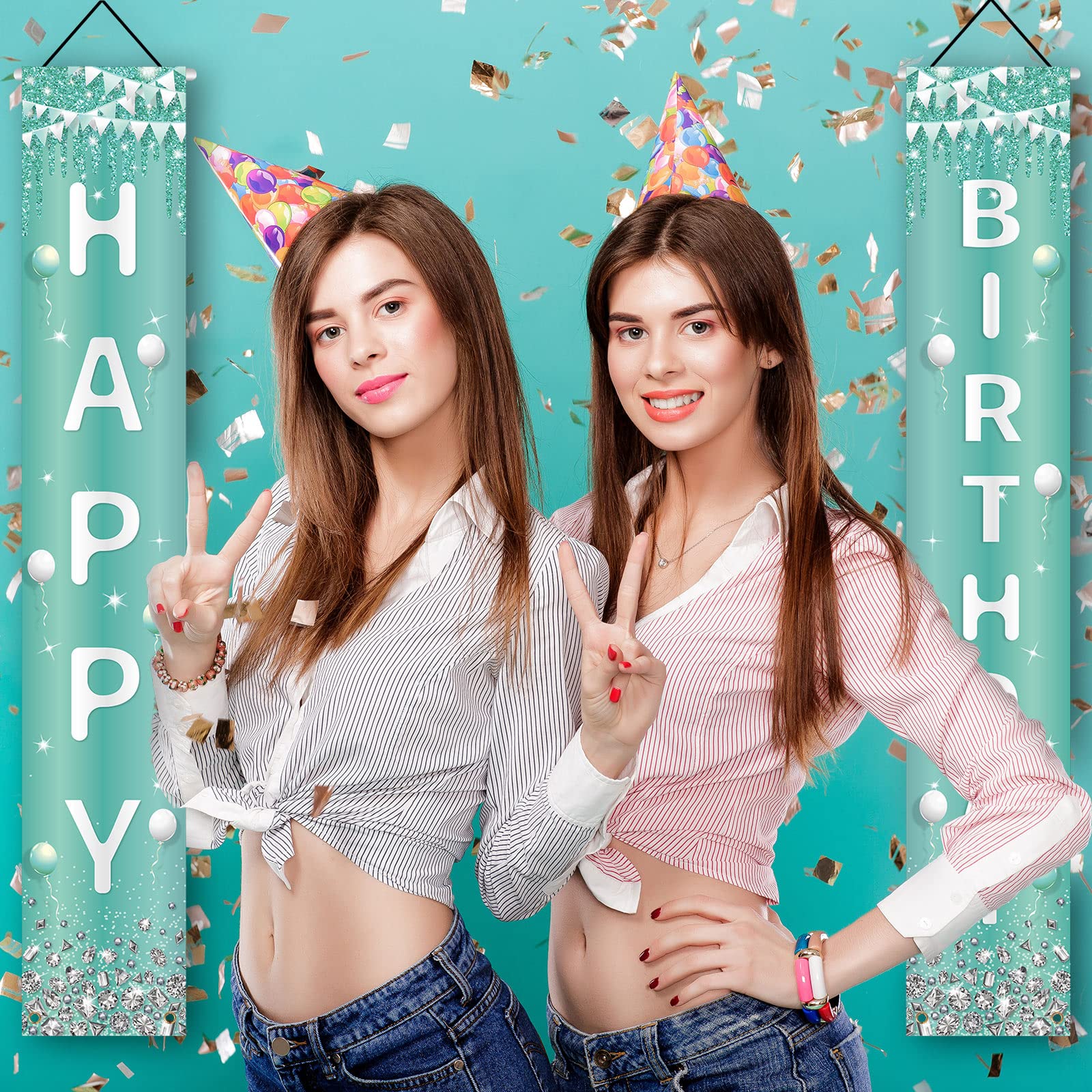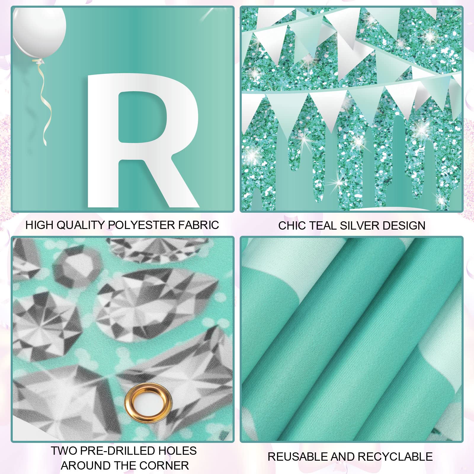 Exquisite Design: with eye catching teal and bold lettering, the birthday door banner greatly enhances the atmosphere of the birthday party; There are also stylish teal sequin designs and balloon decorations, diamond elements on it, your guests will love it
