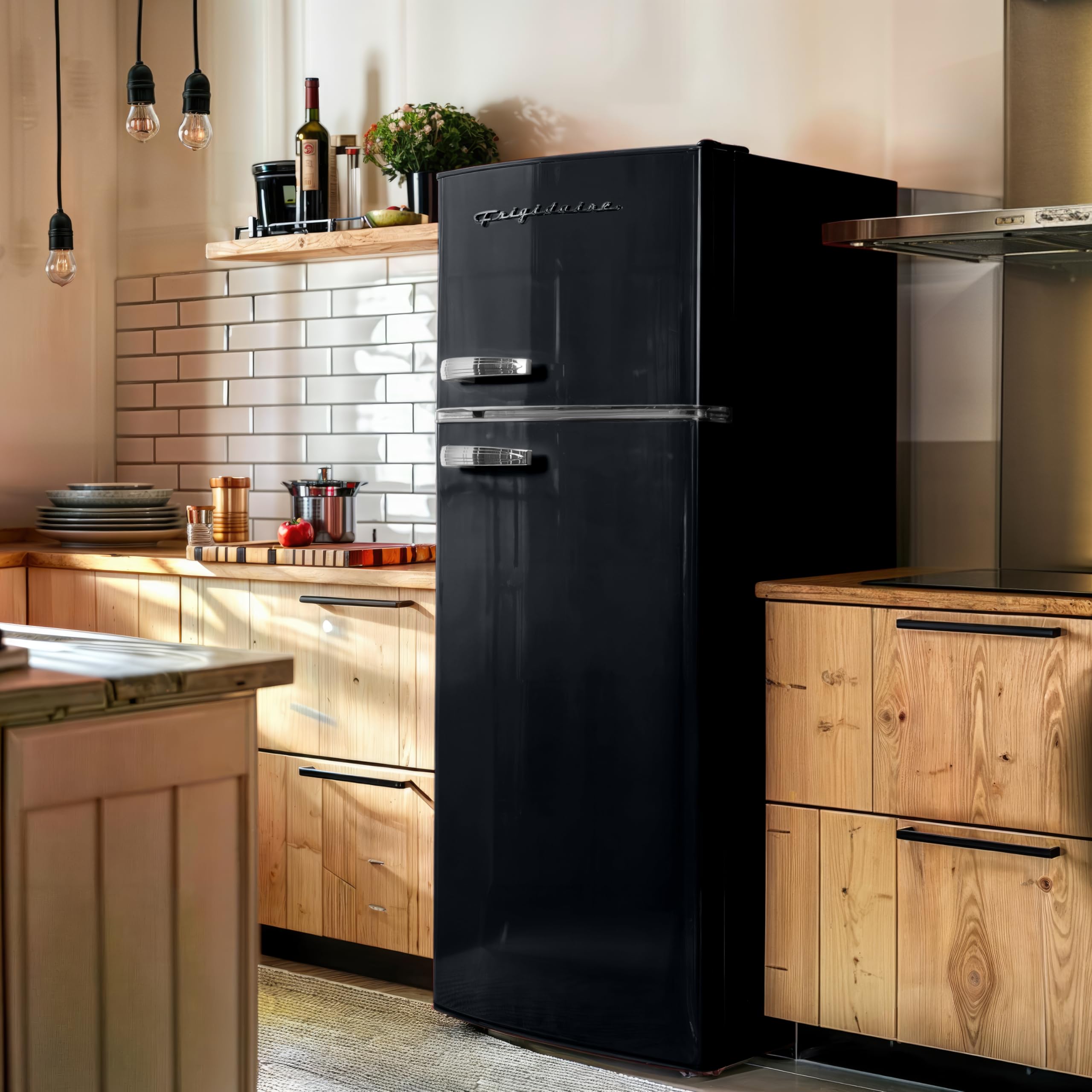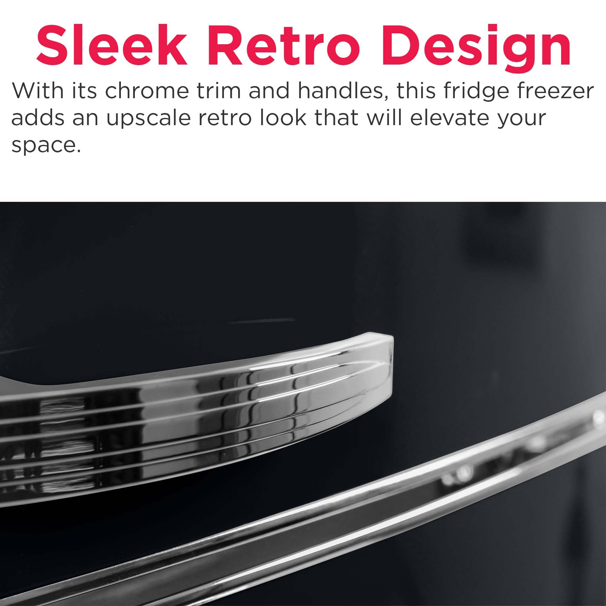Sleek Retro Design- Featuring a sleek and durable retro design with chrome trim and handles, this small fridge freezer adds an upscale retro look that will elevate your space.