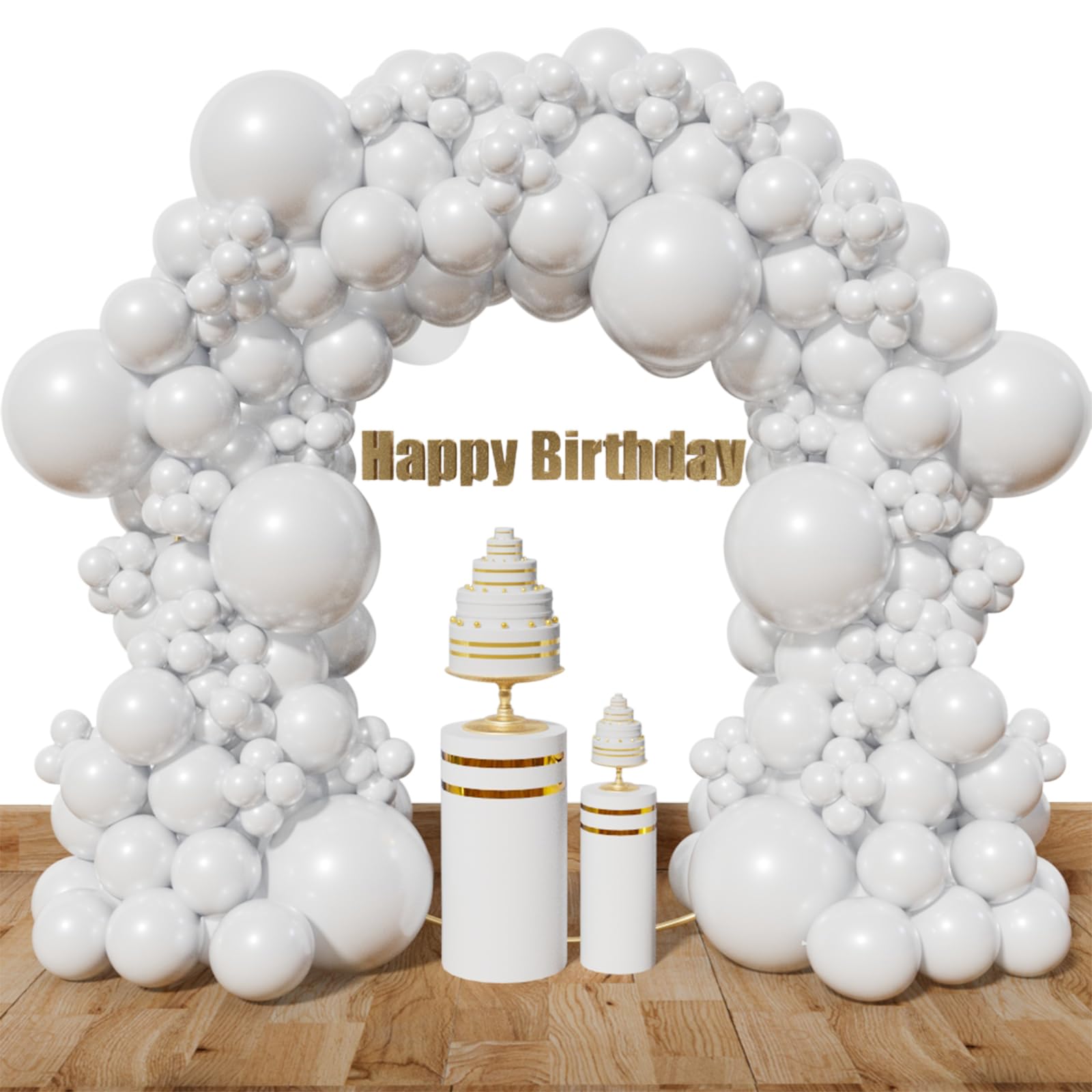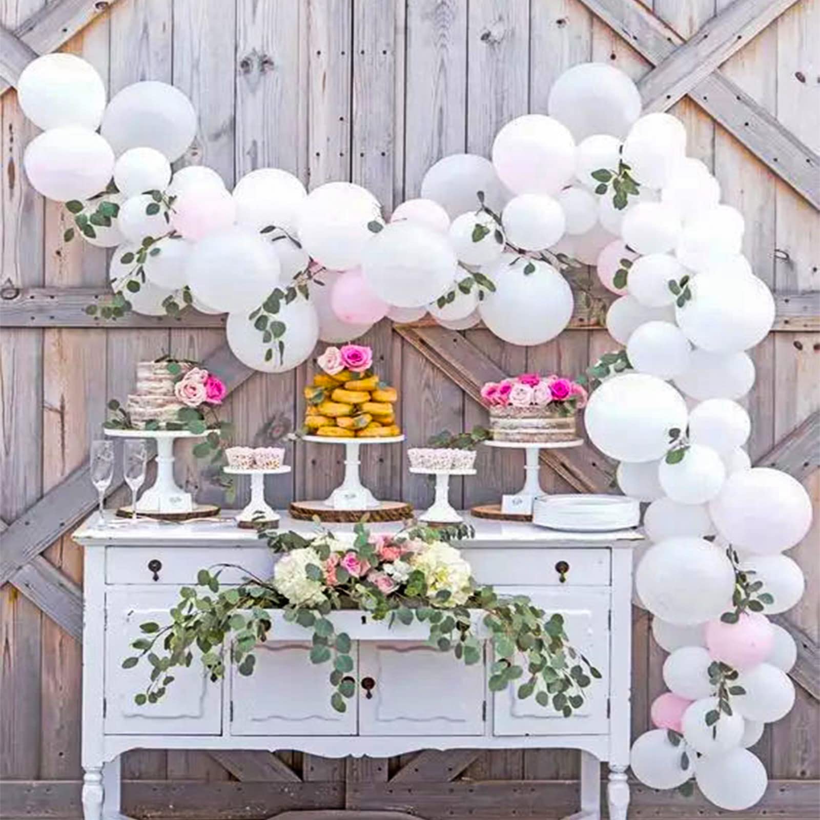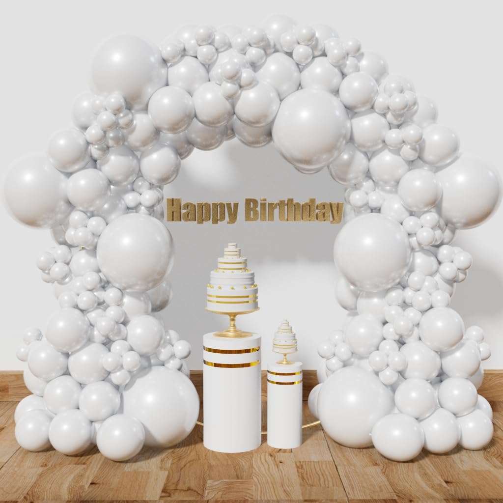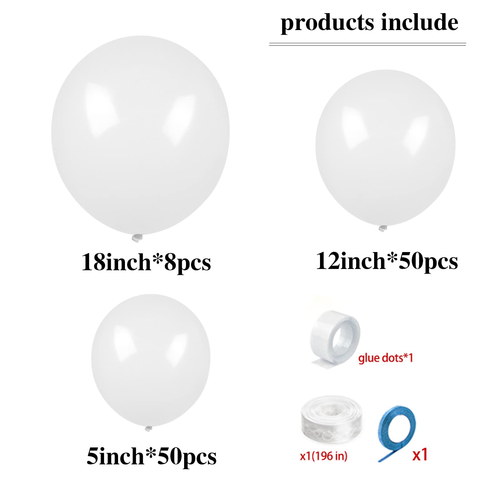 Sufficient number: 3 different sizes, about 8 pieces 18 inch latex balloons, 50 pieces 12 inch latex balloons, 50 pieces 5 inch latex balloons, glue dot 1 package, chain 1, ribbon 1, a total of 111, the number is sufficient to meet your needs for decoration.