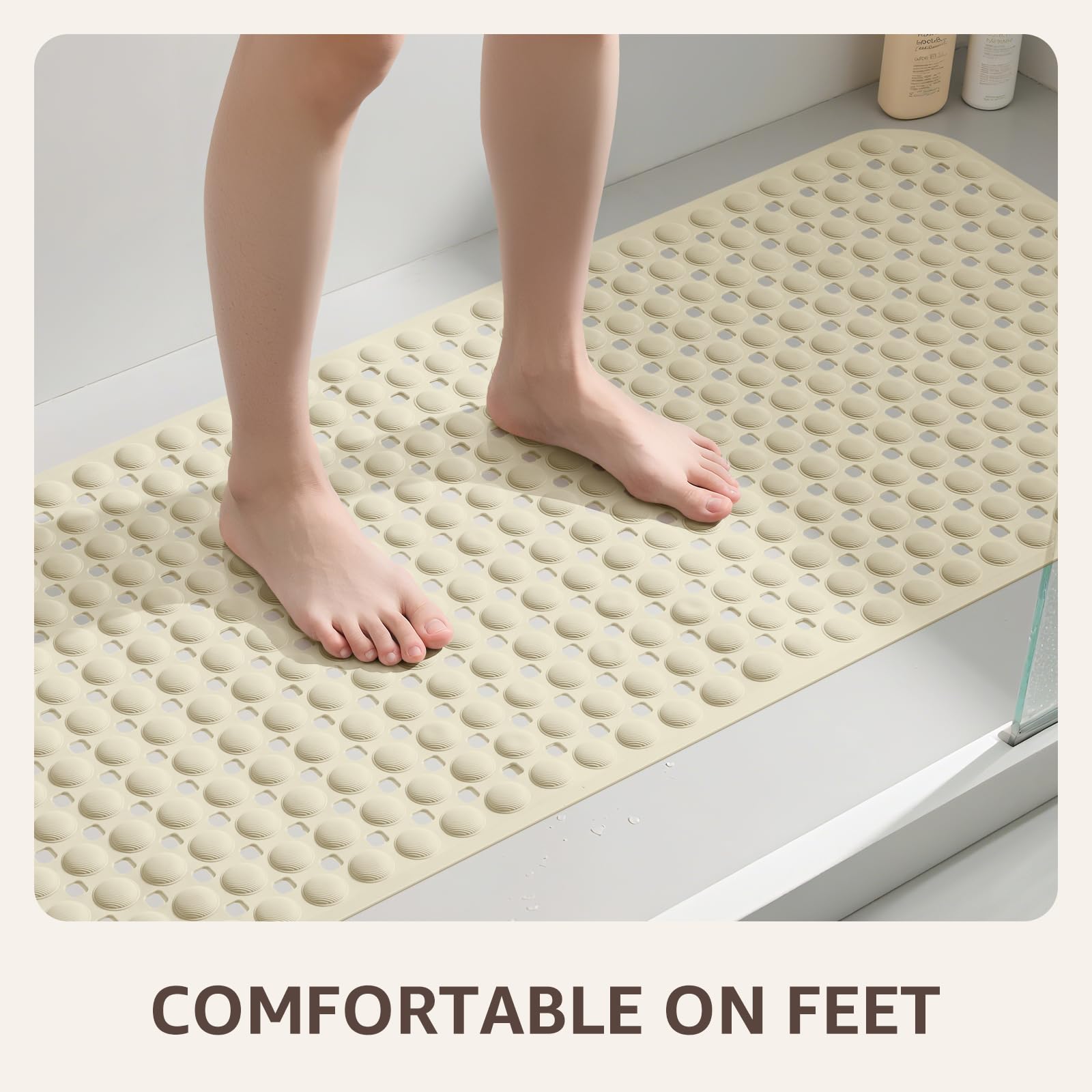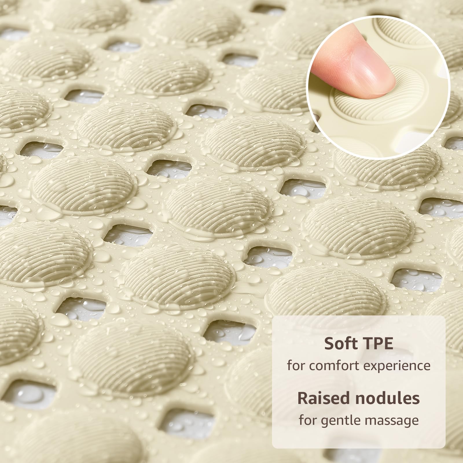 FLEXIBLE TPE Comfort & Durability: Soft yet durable TPE material flexes like a bath mat for tub, with raised nodules for gentle massage underfoot. Designed as a reliable anti-slip shower mat