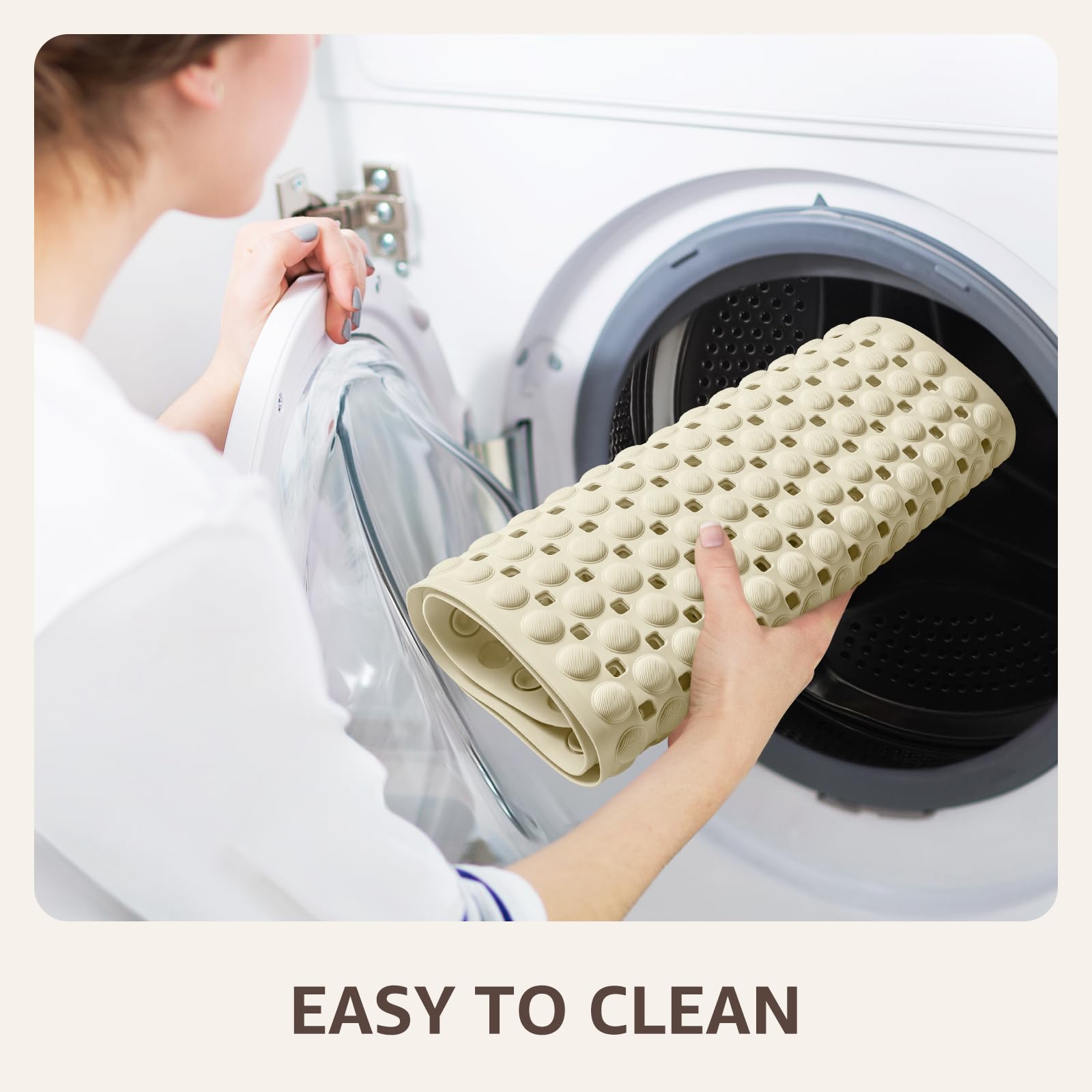 MACHINE WASHABLE Effortless Care: Toss this bathtub mat non slip into any washer. Air-dries completely in 30 mins – zero scrubbing required. (NOTICE: Only suitable for smooth and non-textured surfaces)