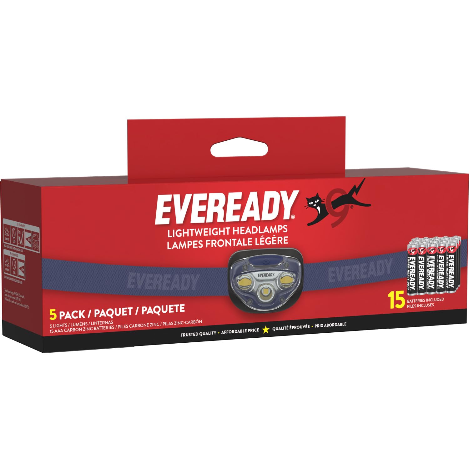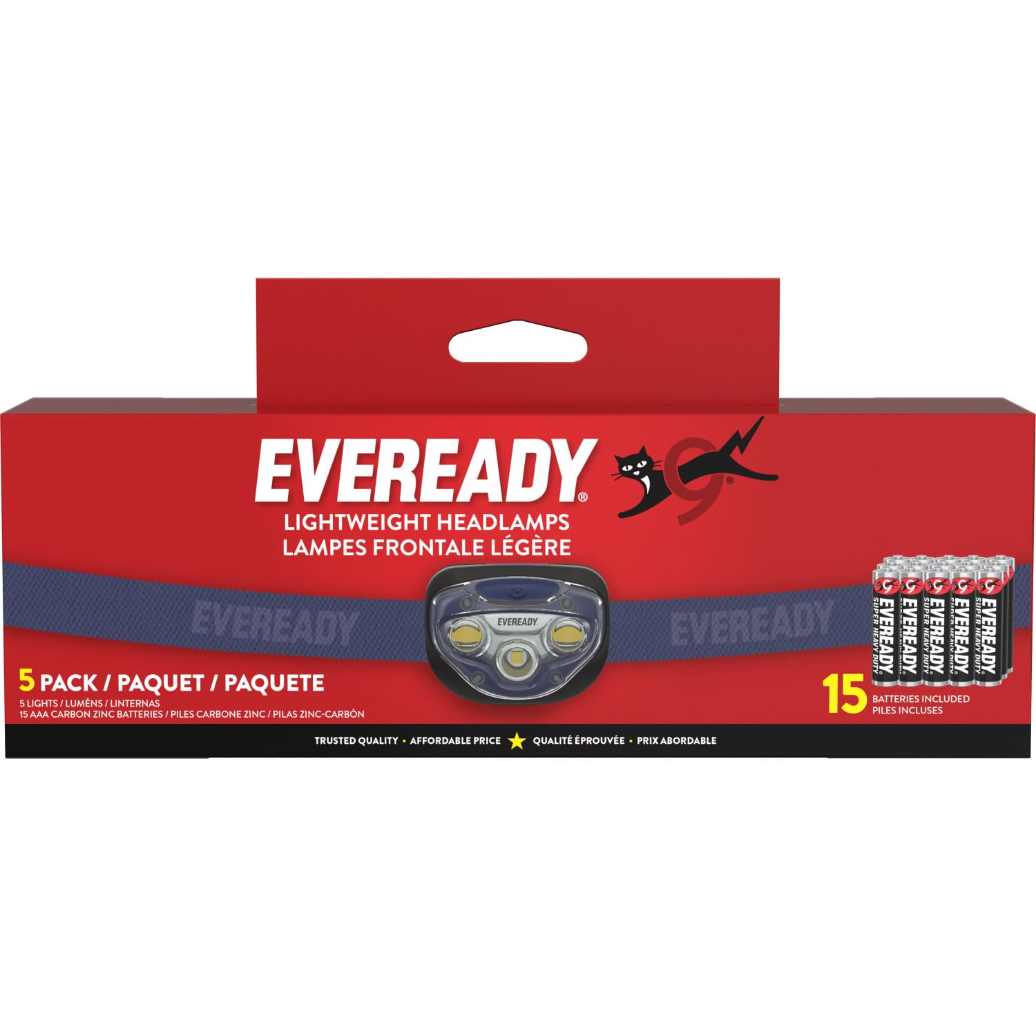 [GREAT WORK HEADLAMP]: This 5-pack of Eveready LED Headlamps with 15 Eveready AAA batteries provides hands free lighting