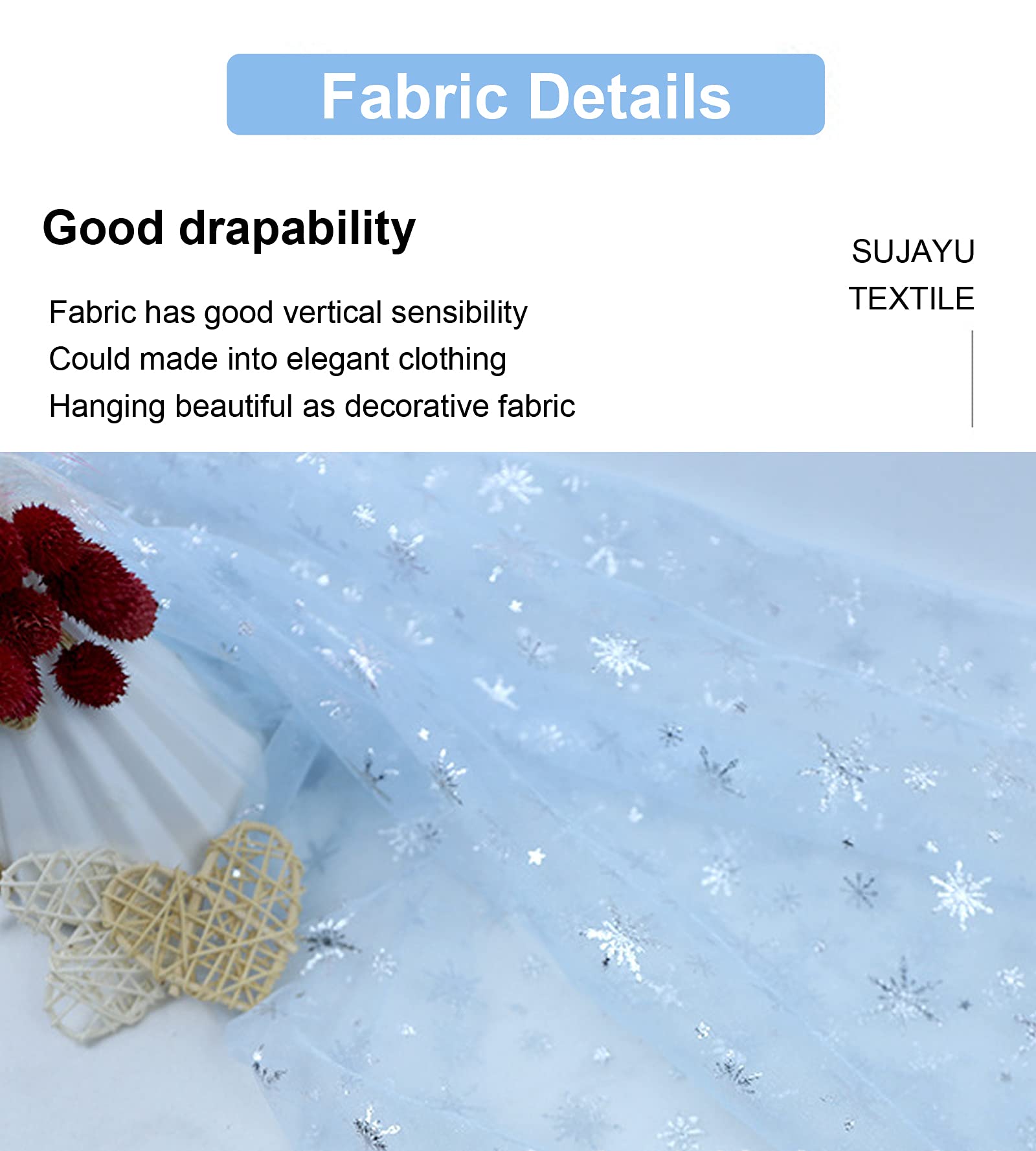 Wide Application - Can be used as Snowflake style costumes, DIY items. Party supplies, baby shower, bridal shower, wedding, birthday, holiday, baptism, graduation. House decoration, wallpaper, curtain, tapestry, tablecloth, home decor. Also could cut to use as beautiful gift package and Christmas tree skirt.