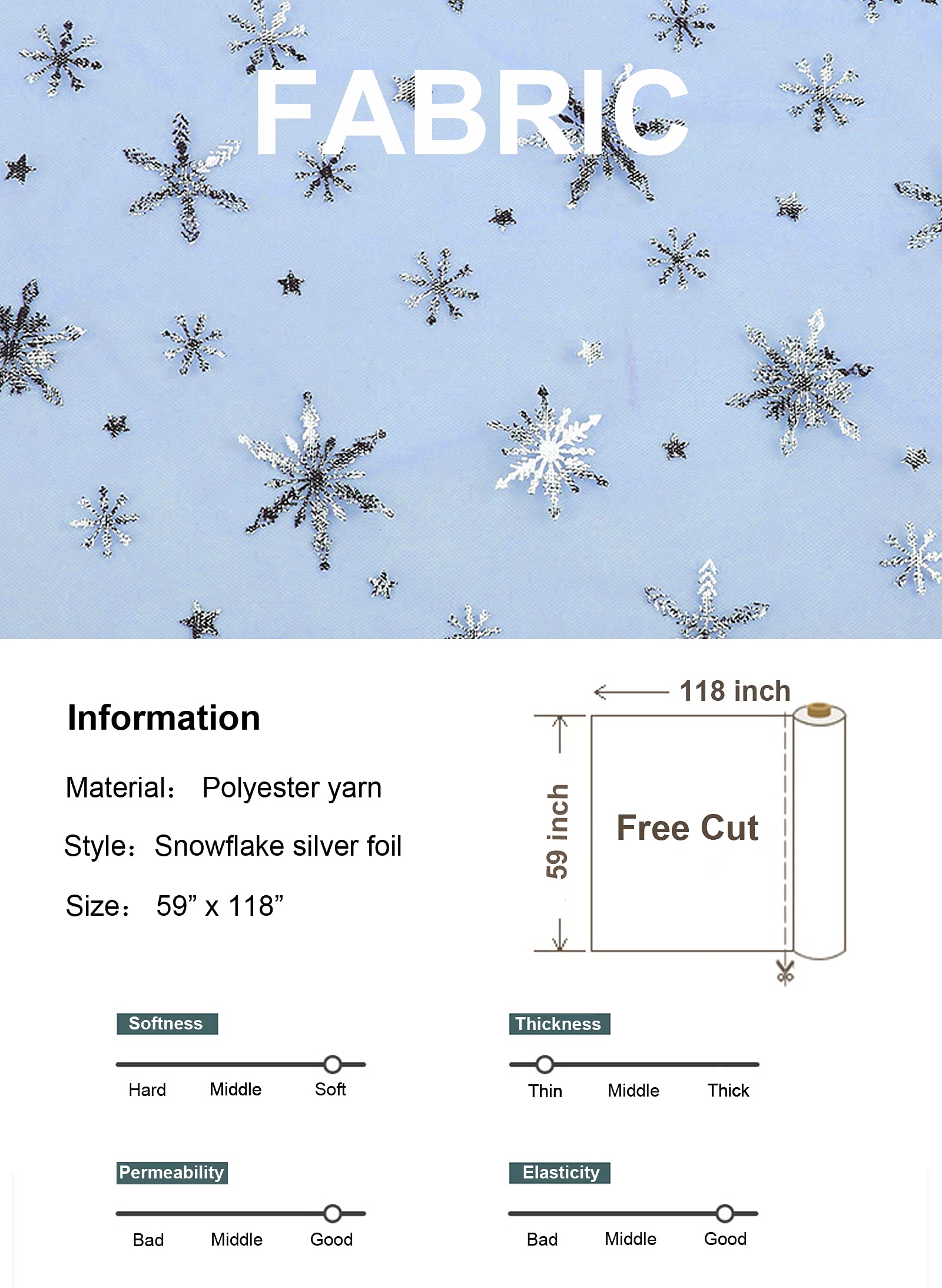 Snowflake Foil - Our fabric is high-resolution digital print with eye-catching details and lifelike colors. The snowflake silver foil is firmly printed on the fabric, will not easily fall off. Looks bright, a glance will be unforgettalbe.