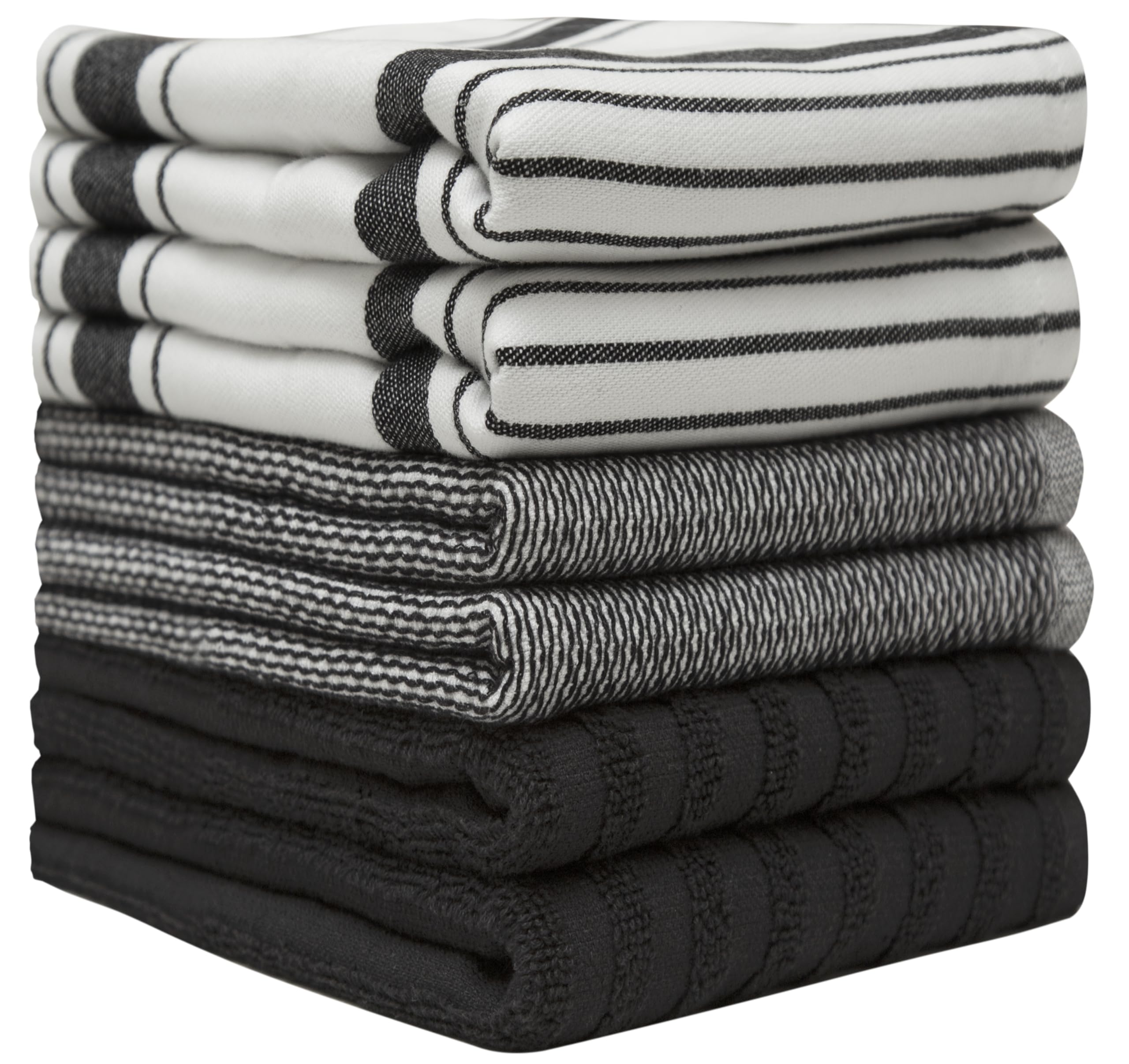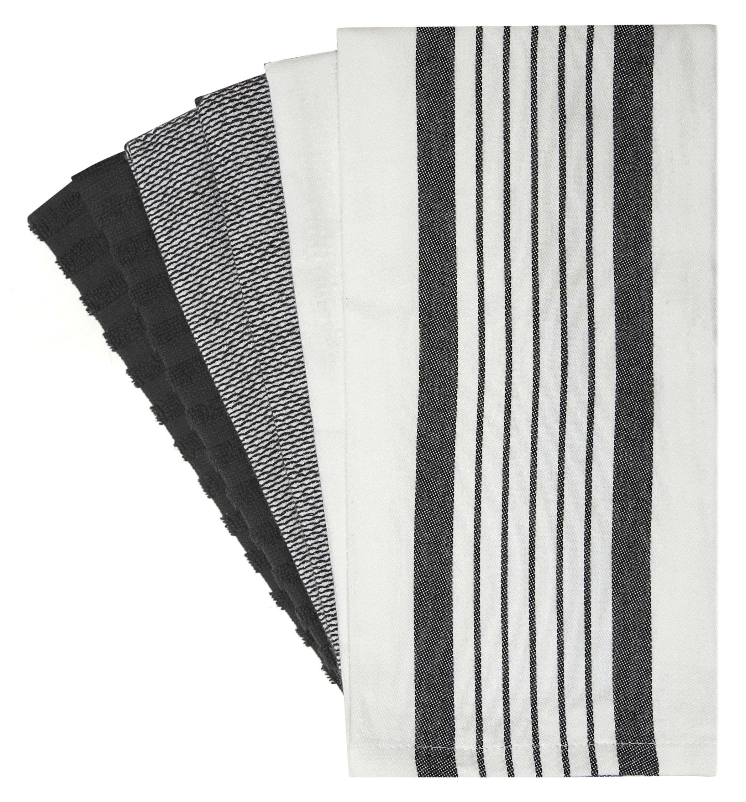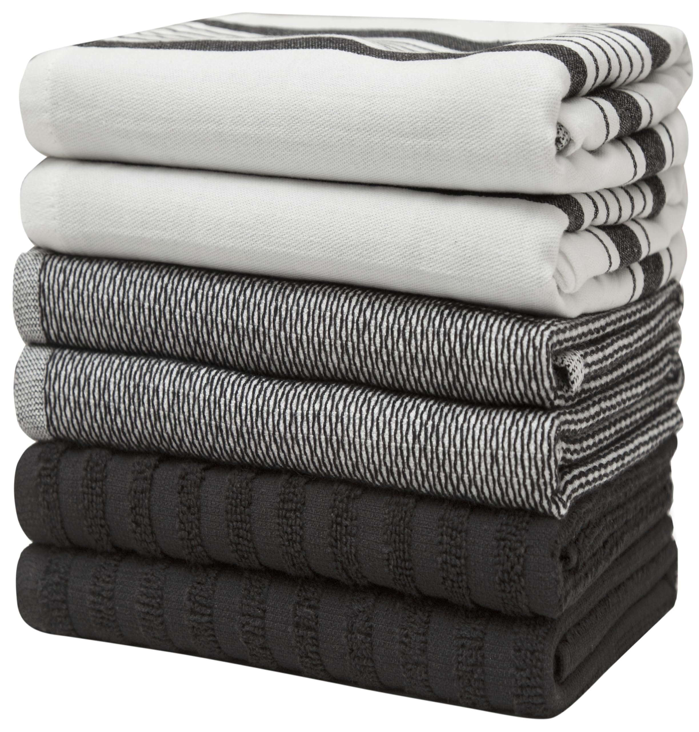 6-PACK: Contains three different textures of towels, including a flat towel and terry towel. Great for drying dishes, cleaning kitchen countertops, wiping up spills, and more