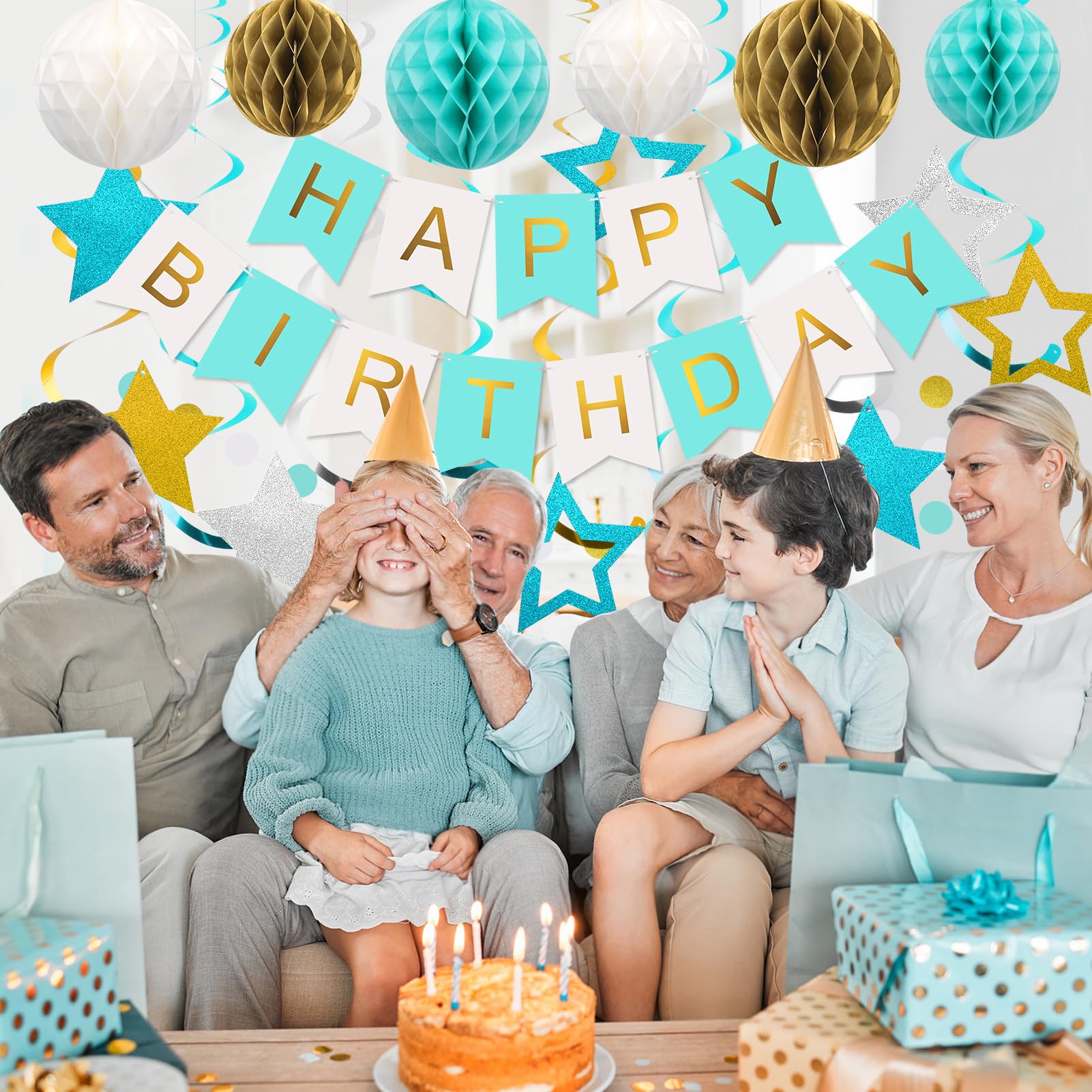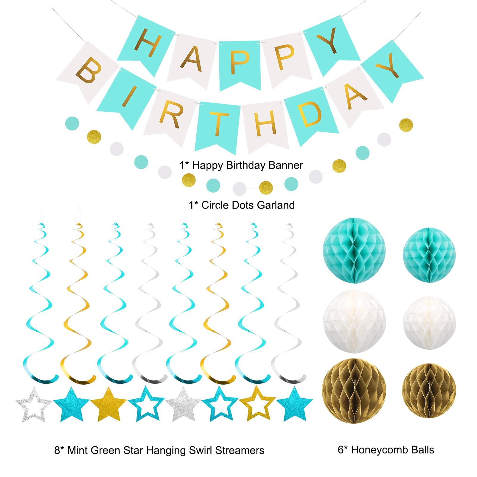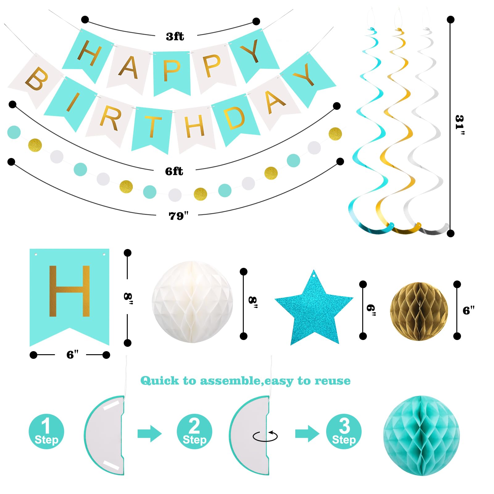 Package Including: With our Birthday Party Decorations package, you'll have everything you need to create the perfect party atmosphere. You can get 1pcs Happy Birthday Banner, 12pcs Honeycomb Balls, 16pcs Stars Swirls Streamers, and 1pcs Circle Dots Decorations. No need to worry about running around and finding individual items. It's convenient package.