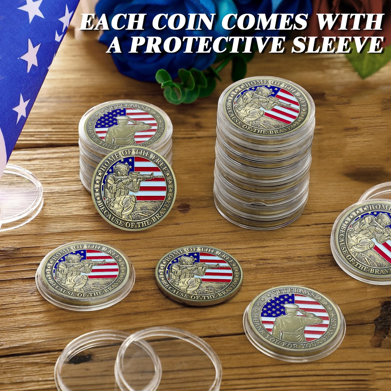 【Meanignful Military Gifts】Each thank you for your service coins comes with a clear plastic protective sleeve to keep it in pristine condition, whether as a meaningful gift or for daily carry. These coins are perfect for military retirement gifts, Veterans Day gifts, or as a commemorative gift for the soldier hero in your life on special occasions and holidays such as graduations, Flag Day, Veterans Day, Memorial Day, Independence Day, military homecomings, Thanksgiving, and Christmas