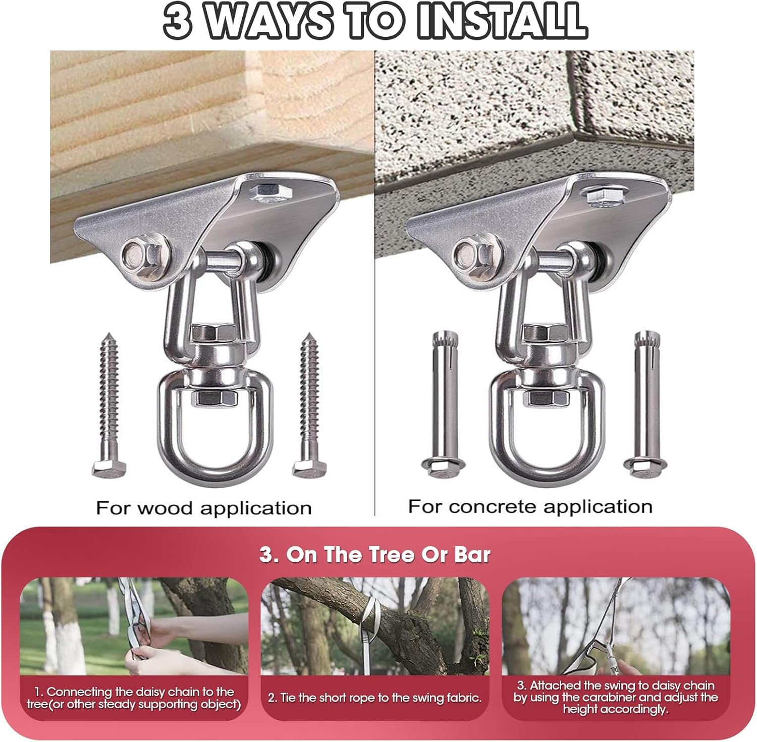 [DURABLE & SAFE]: The therapy swing comes with silk Nylon hammock, 1 Multi-loop climber strength daisy chains, 1 safety carabiner with twist lock system, 1 connecting rope, 360° swivel hanger, expansion screws x2 and self-tapping screws x2. The hardware and the accessories we provide are durable, whose max load-bearing capacity is up to 220 lbs (100 kg).