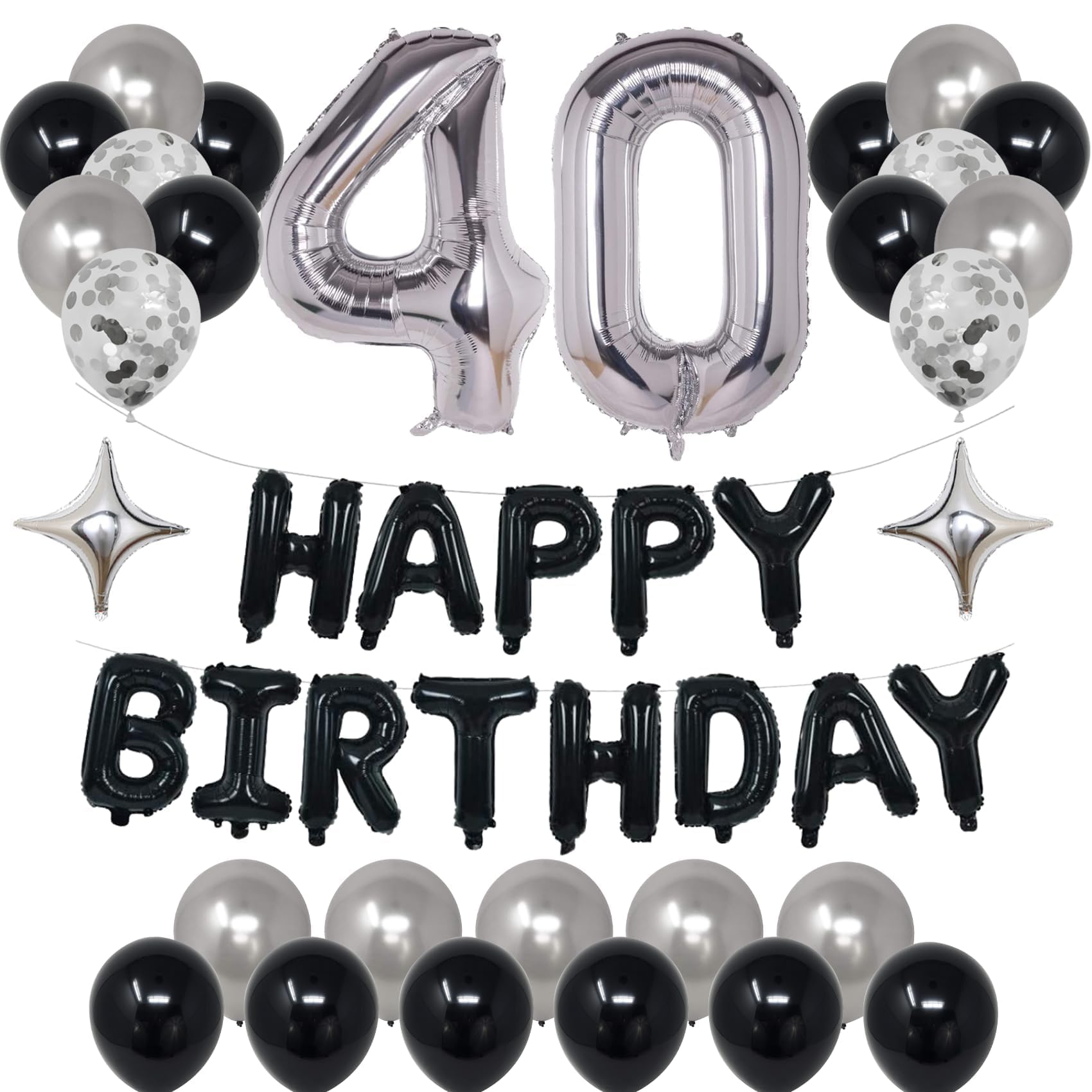 What our kit includes: This mysterious 16th happy birthday balloons decor package includes ‘HAPPY BIRTHDAY’ banner*1 set, number 16 foil balloons*2, star foil balloons*2, black latex balloons *12, silver latex balloons *10, silver confetti balloons*4, which will meet all your needs