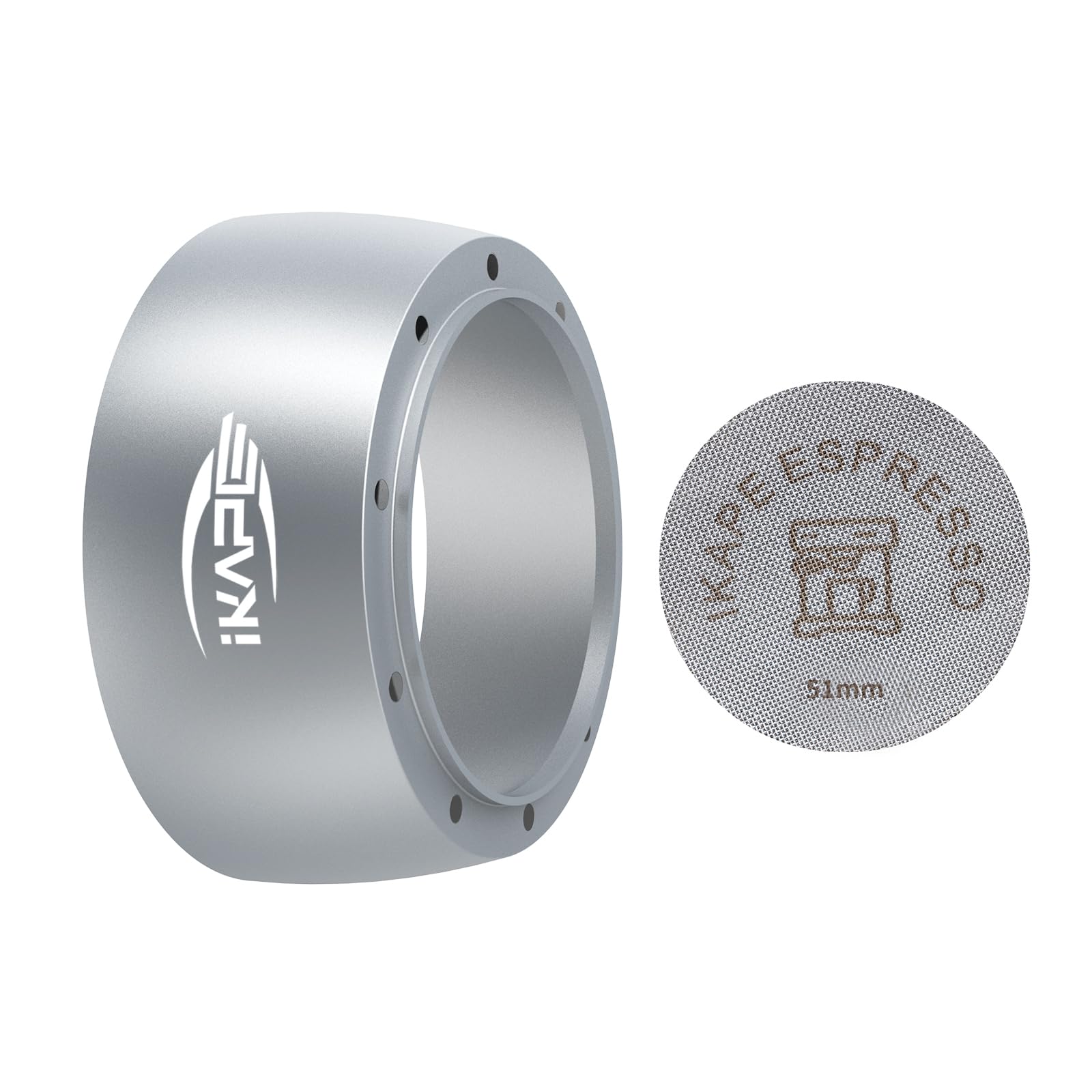 💖💖 IKAPE Coffee Dosing Funnel – 51mm.💖 1. Attach the coffee dosing ring to your portafilter and then grind directly into the basket without any mess or waste.💖 2. For better consistency and better distribution use IKAPE 51mm coffee dosing funnel.💖💖 Specifications:🌸 Material: High-quilaty Stainless Steel.🌸 Diameter: 51MM.