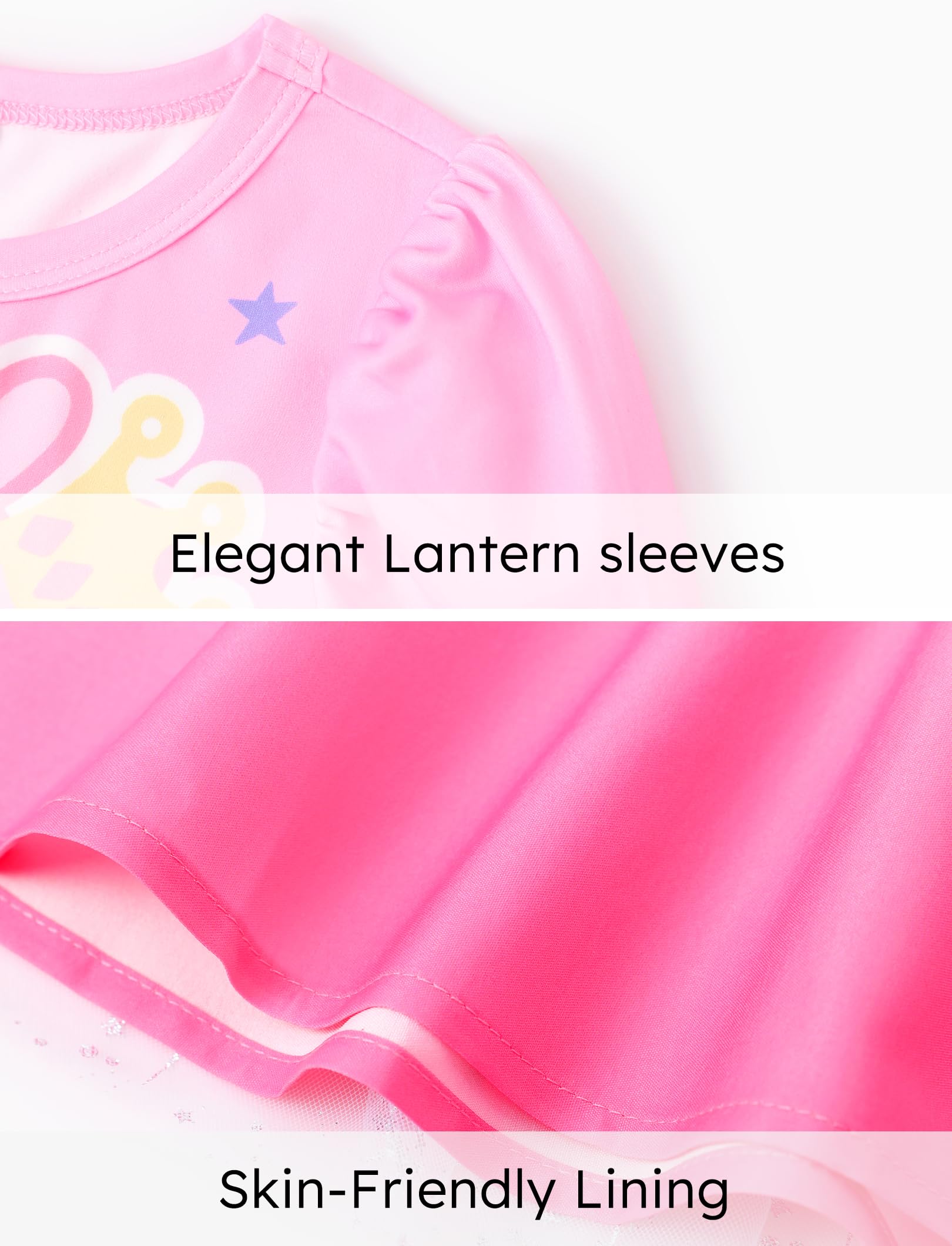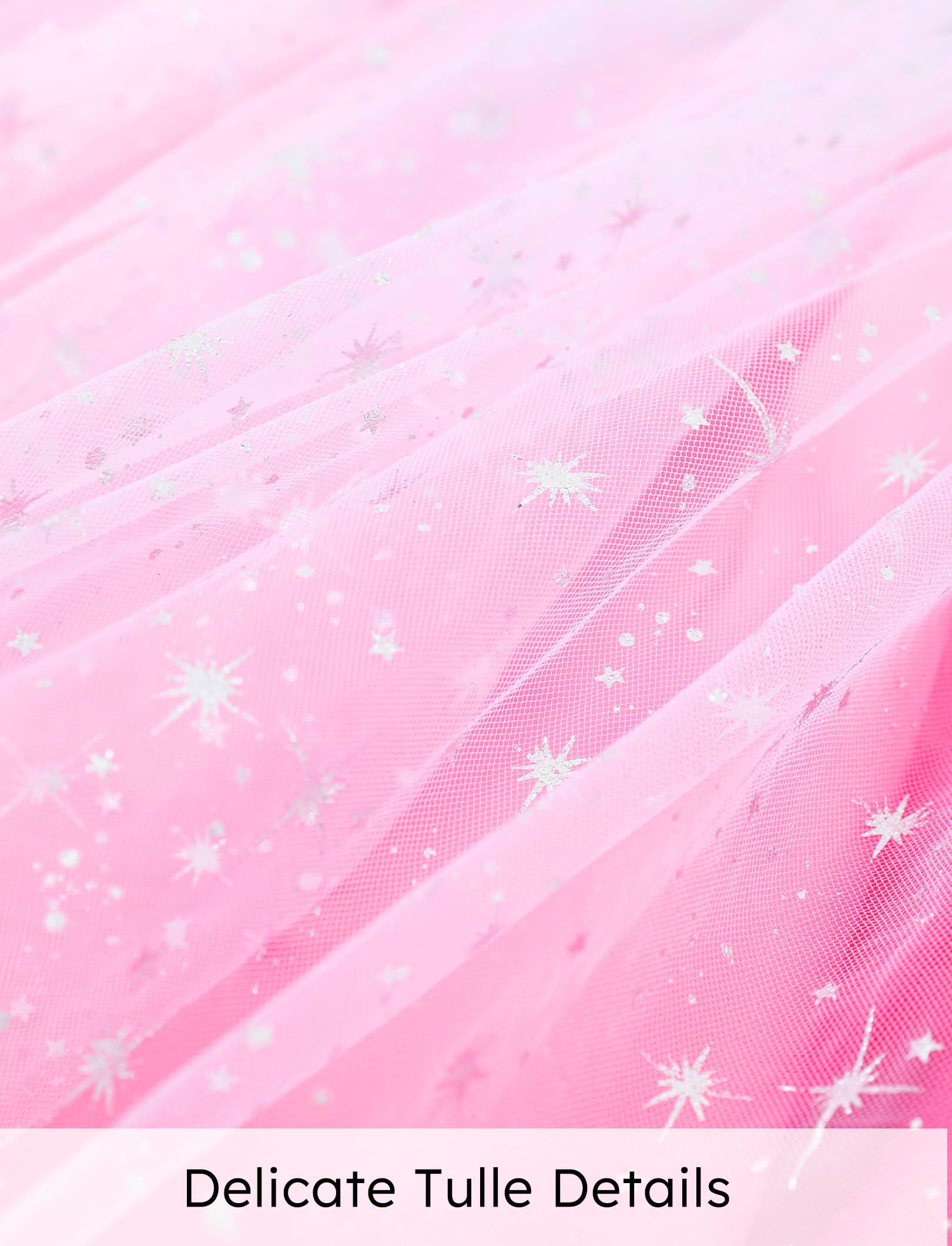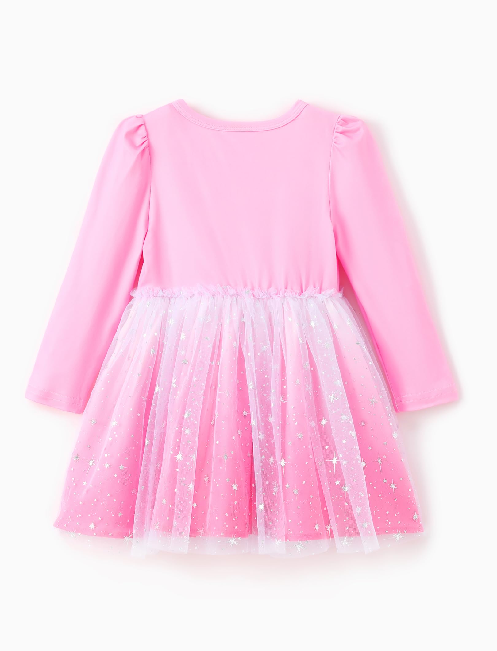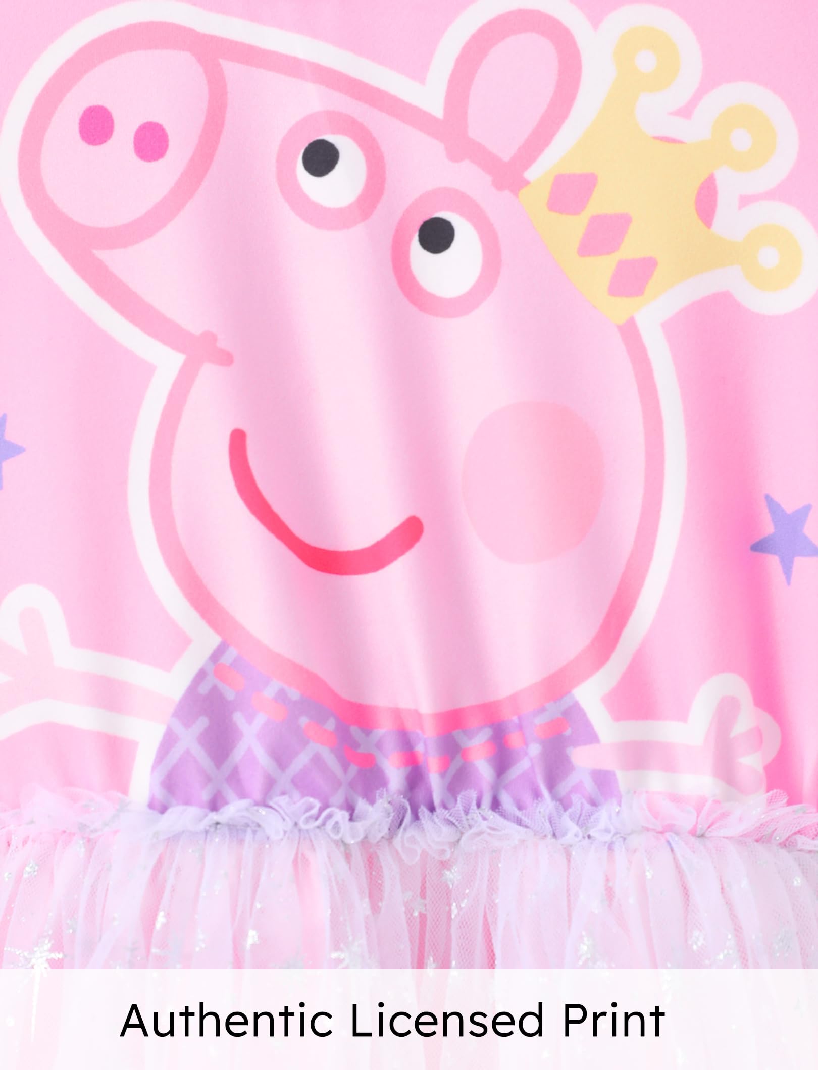 Unique Design:This girl's dress is pink and has long sleeves. The upper part is printed with Peppa Pig, who wears a small crown on her head, which makes her look very cute. The lower part of the dress is made of transparent tulle and decorated with sparkly star decorations. The overall design is very dreamy and is especially suitable for birthday party or special occasions.