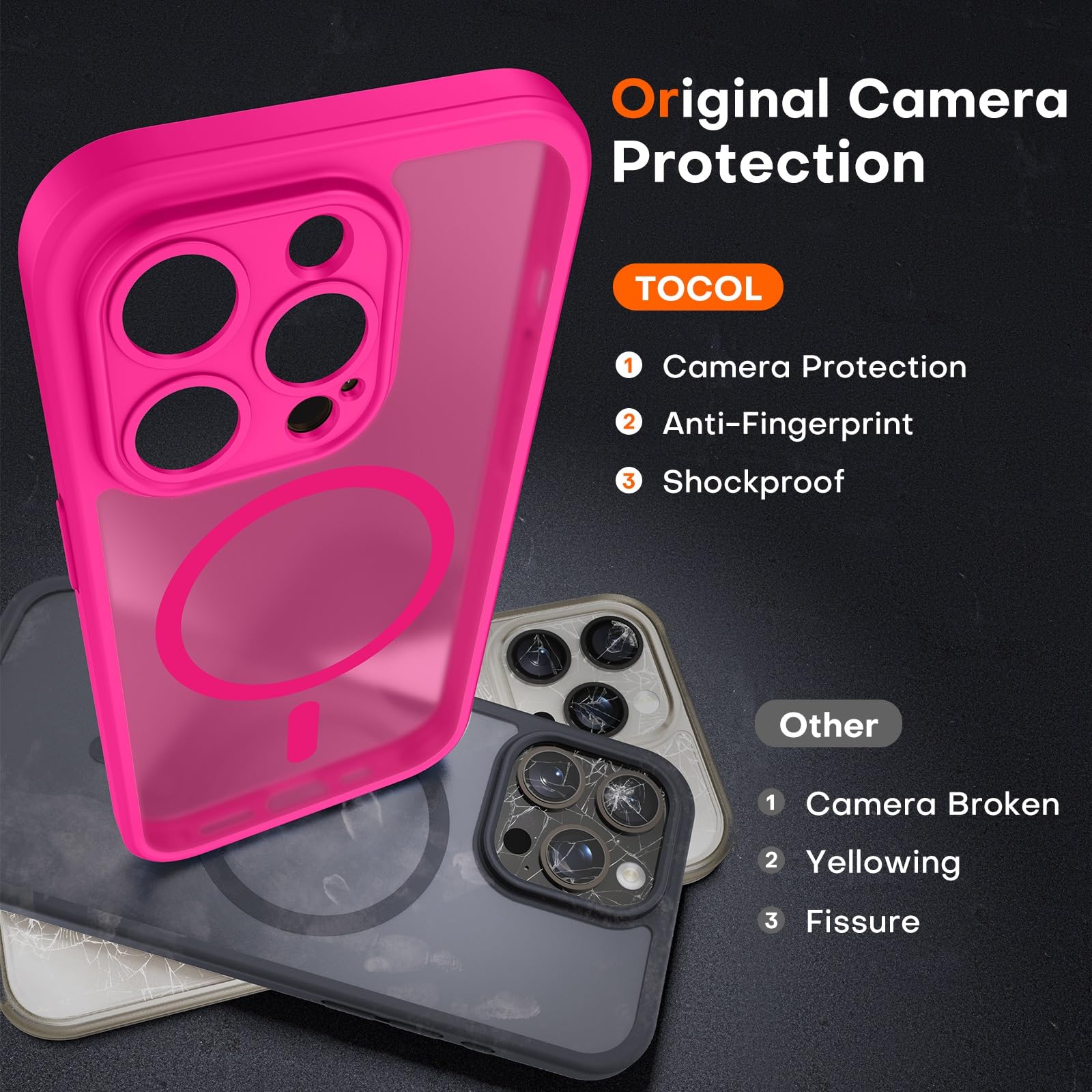 Designed for Camera Safety: TOCOL case for iPhone 15 pro max upgraded camera surround protection, integrated with the case. The camera frame is 0.8mm higher than the camera lens, which can protect your most precious camera lens from scratches and collisions