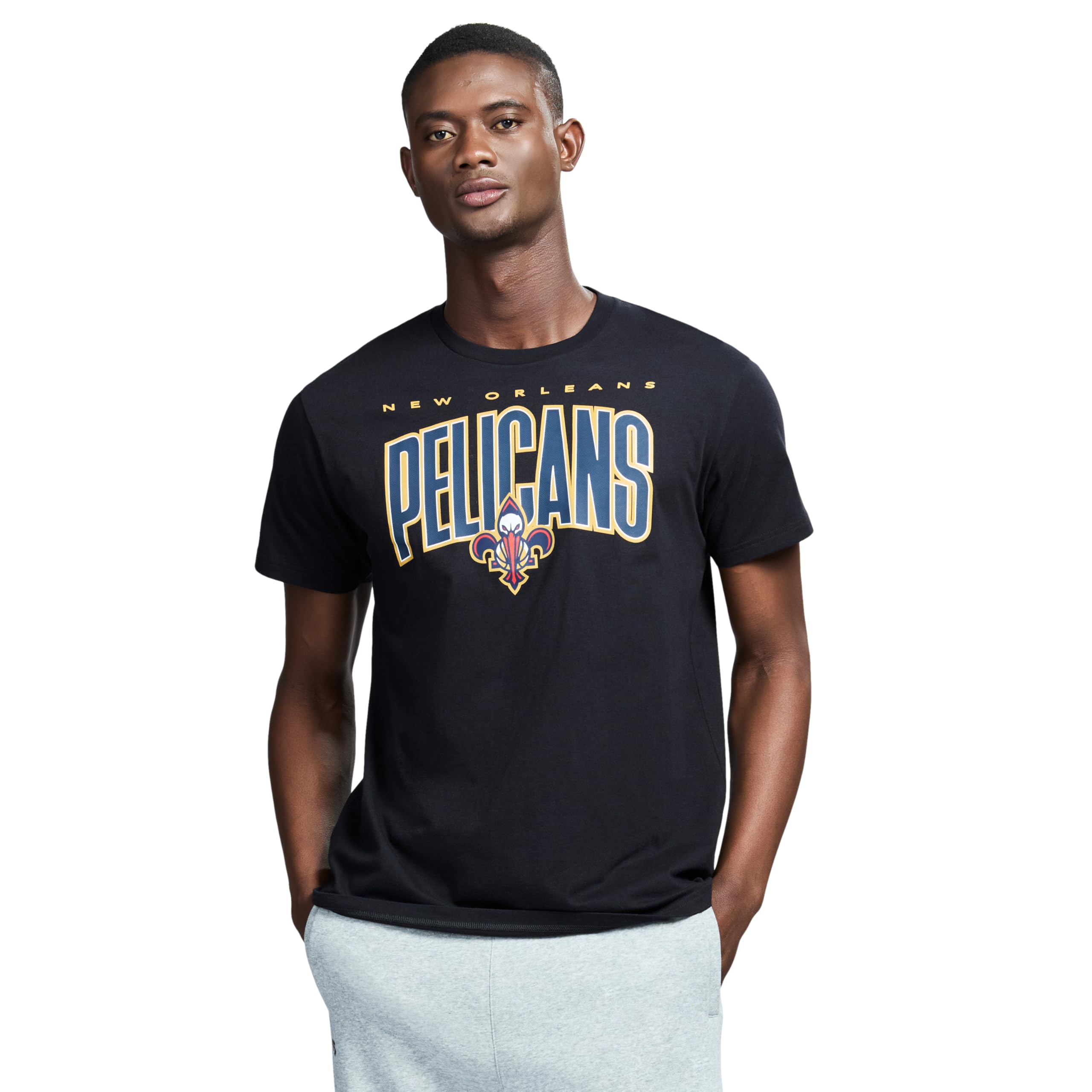 FUNCTIONAL AND STYLISH DESIGN: A black body creates bold color contrasts with NBA team logos. Functional additions include two side pockets and a loose fit for unrestricted movement.