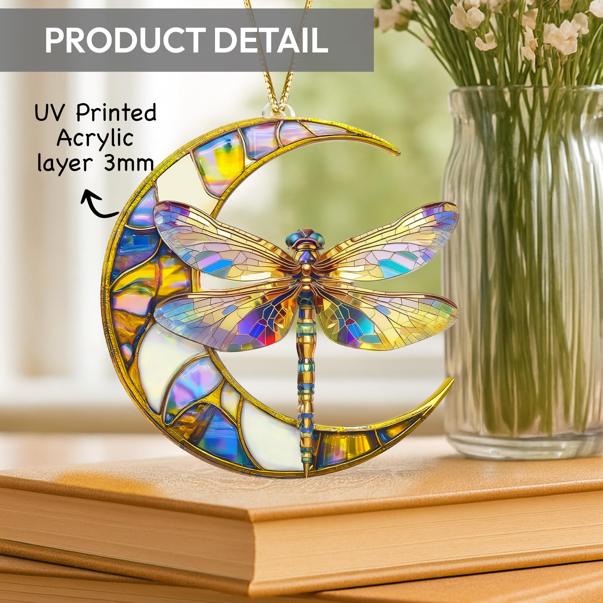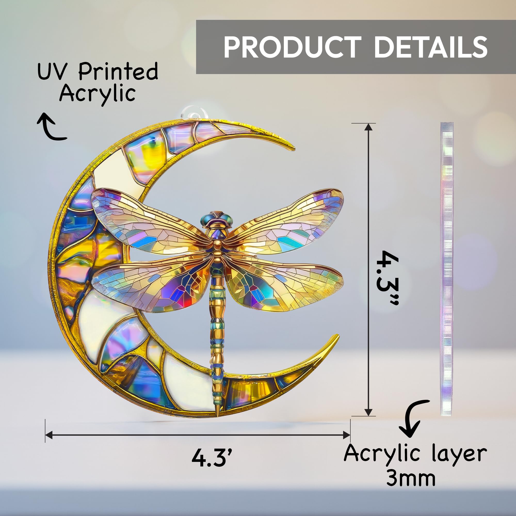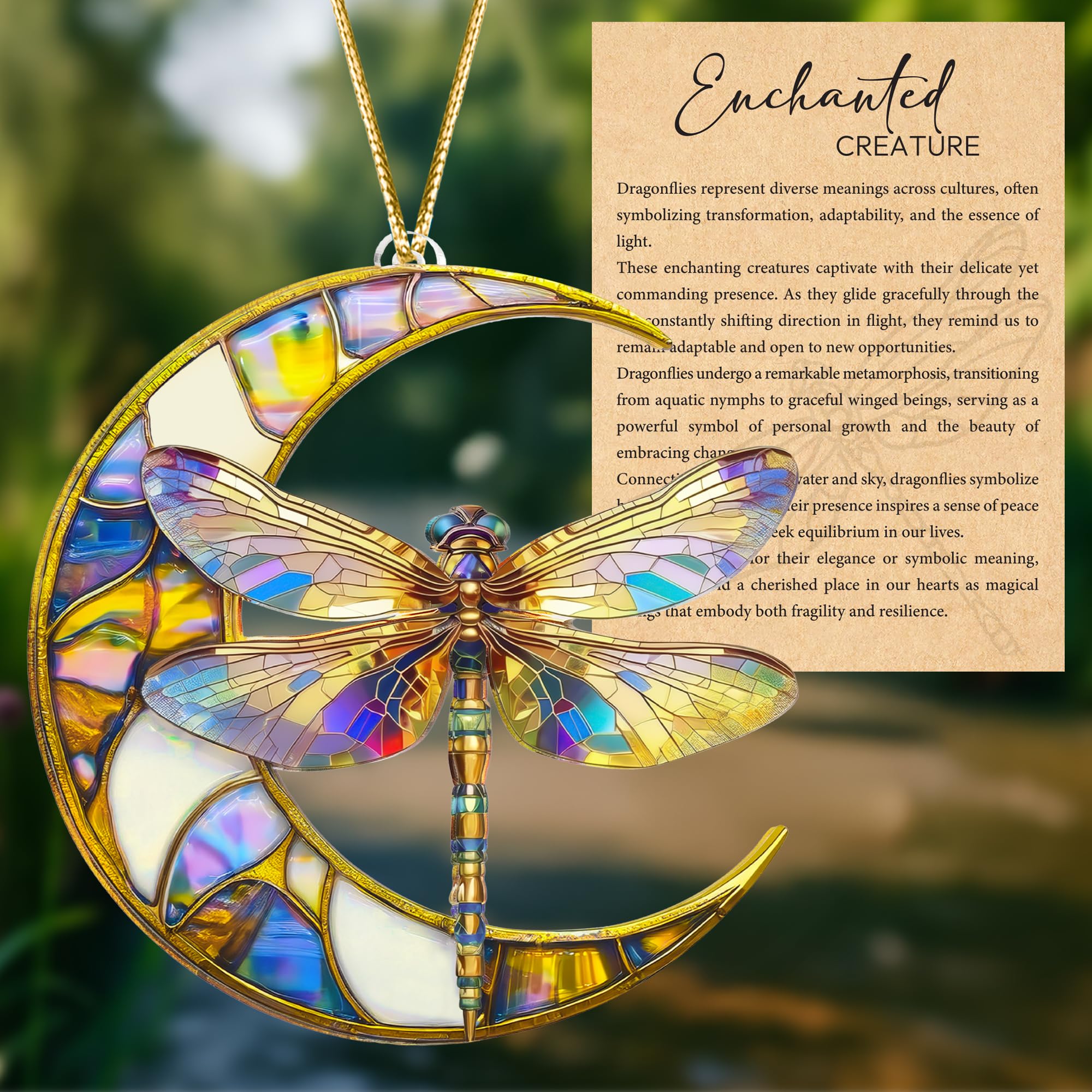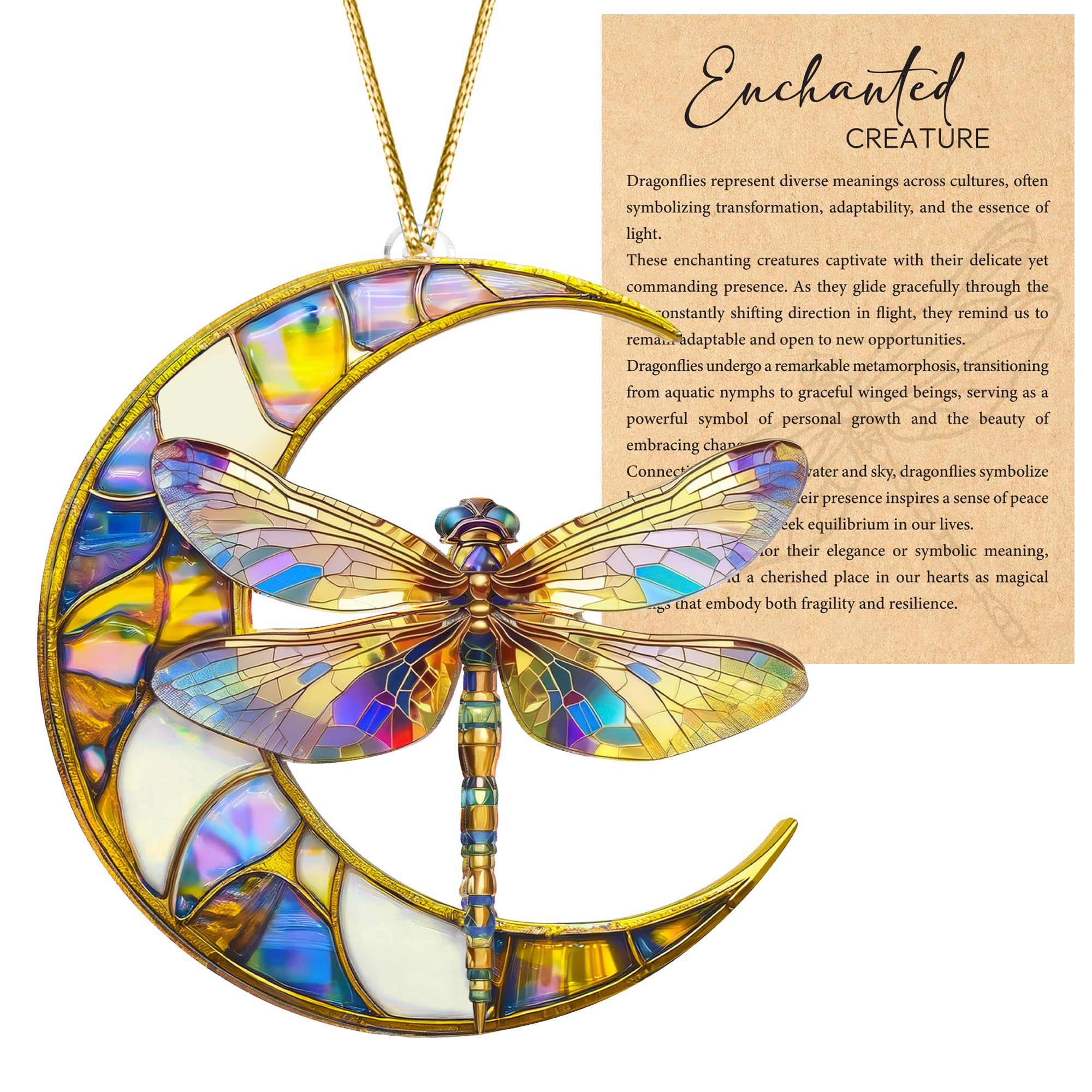 đ Stained Glass Effect Without Real Glass â Designed with a shimmering finish that mimics stained glass dragonfly art, this lightweight piece creates a soft, colorful glow without the fragility of glass. A stunning dragonfly sun catcher for windows or indoor light.