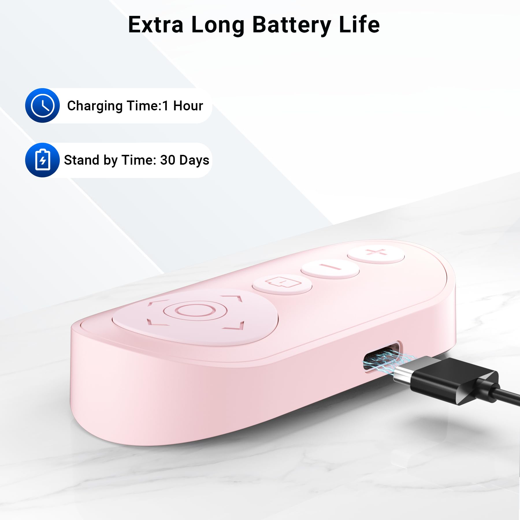 【Video Scrolling & Page Turner】Compared to other single function remote controls, our upgraded wirless remote control not only has a shutter function, but also multiple functions such as zooming, switching between front and rear cameras, flipping pages, scrolling short videos and adjusting volume. This Versatile remote control can meet all your needs for taking photos & videos, Tiktok and reading e-books at the same time