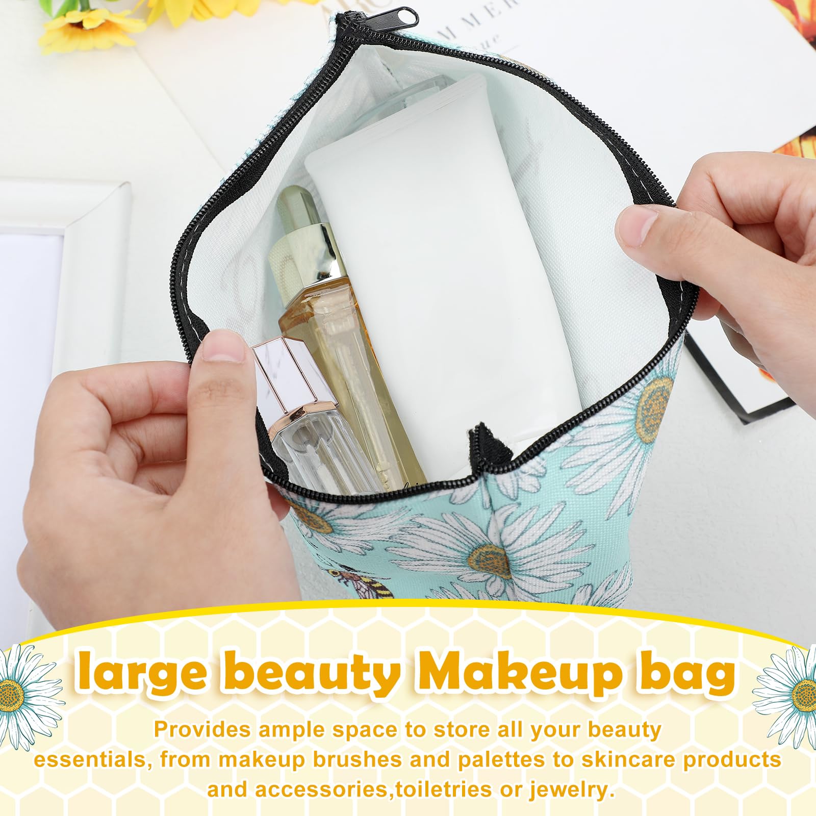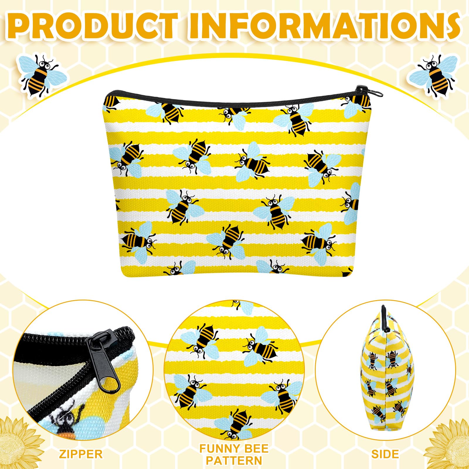 Reliable Construction: constructed with robustness in mind, this bee makeup bag is made of robust canvas, designed to withstand daily use and to last for extended periods; It features a secure zipper to ensure safe and easy storage of your cosmetics, providing peace of mind for those who value reliability and robustness in their products