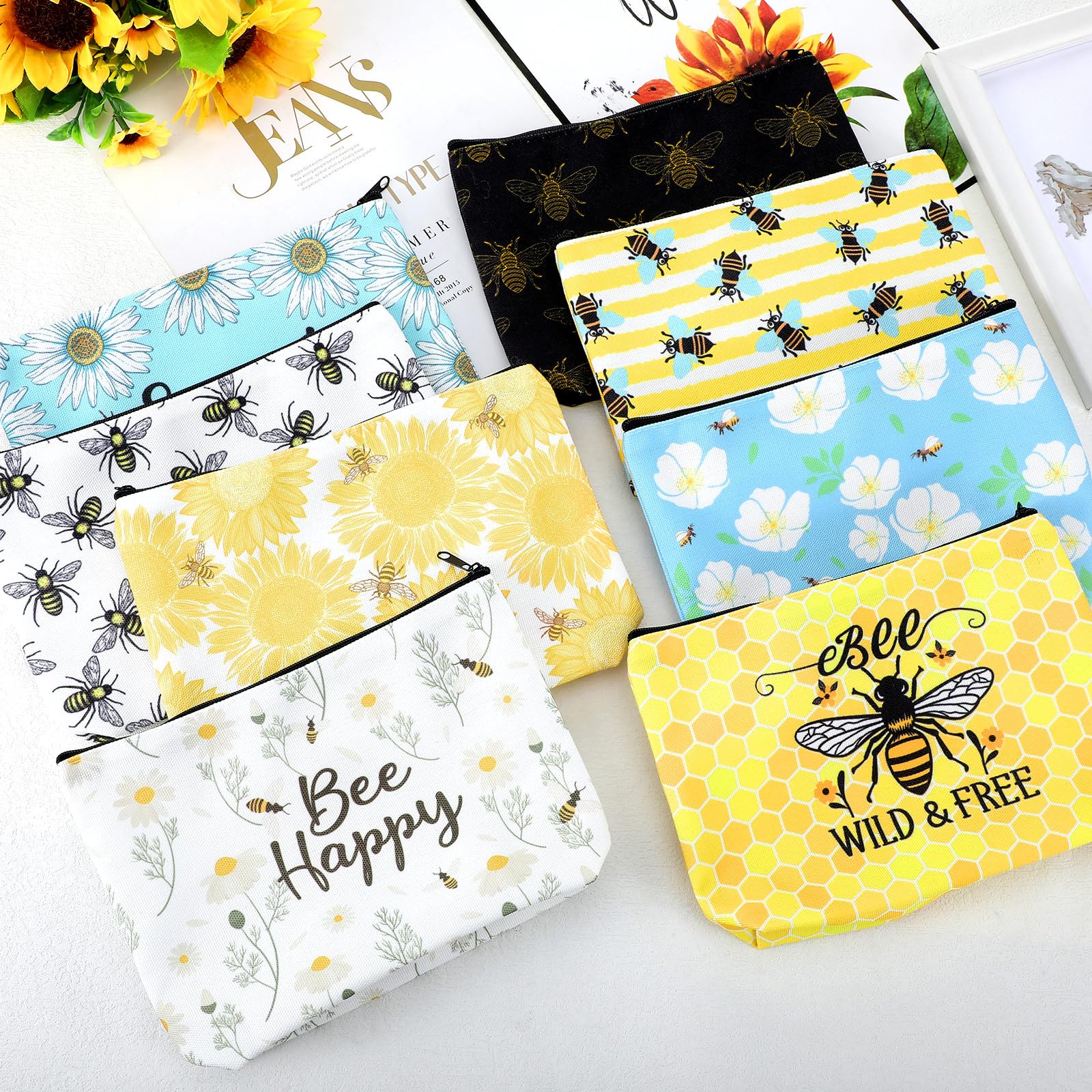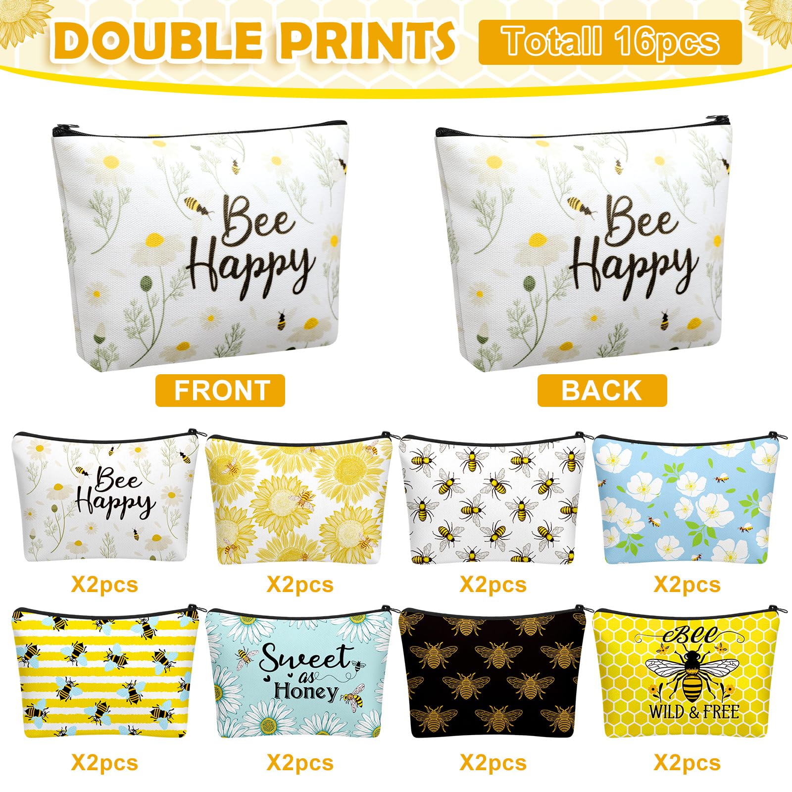 Ideal for Nature Enthusiasts and Bee Fans: appeal to bee lovers and nature enthusiasts with this unique bee themed makeup set; The set includes 16 makeup bags, each adorned with cute bee patterns and available in 8 different designs; Not only are these bags visually appealing, but they also cater well to the customer's aesthetic needs