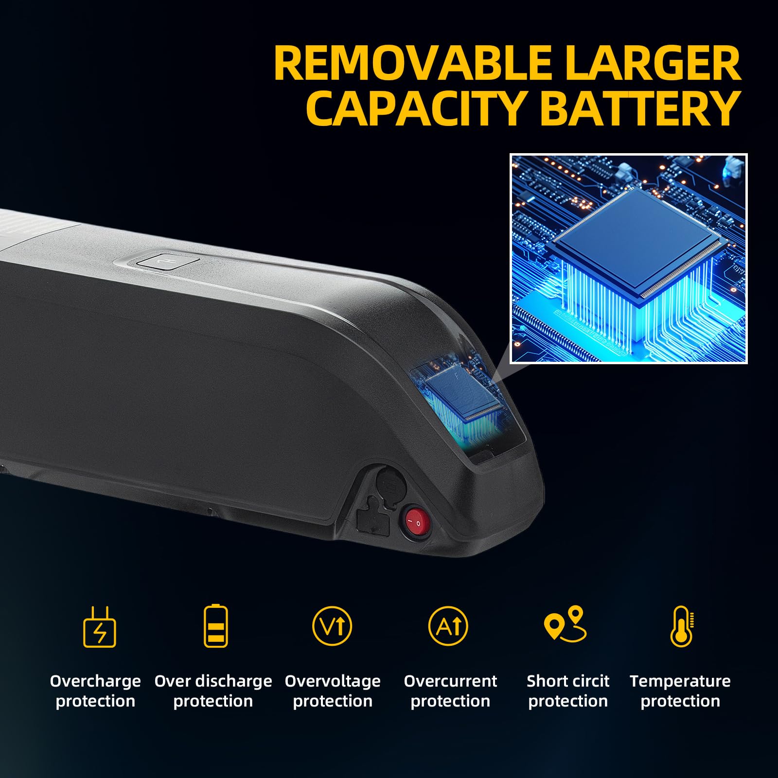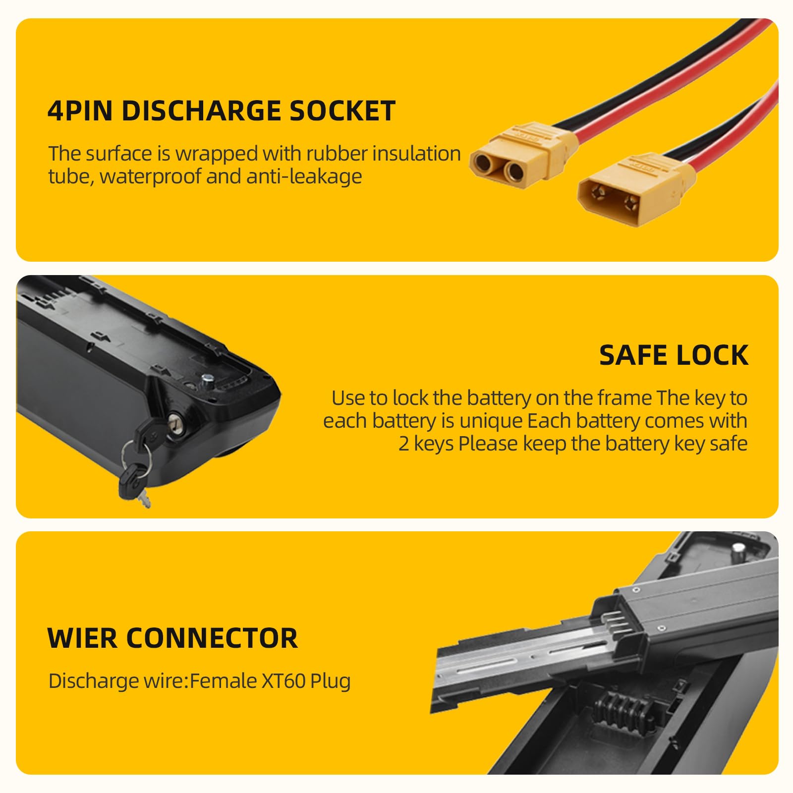 【High Discharge Currents】: Lithium batte ries can provide 30A high discharge currents, 75A instaneous max discharger curret. which is important for the performance of e-bikes, especially during acceleration and uphill climbs.