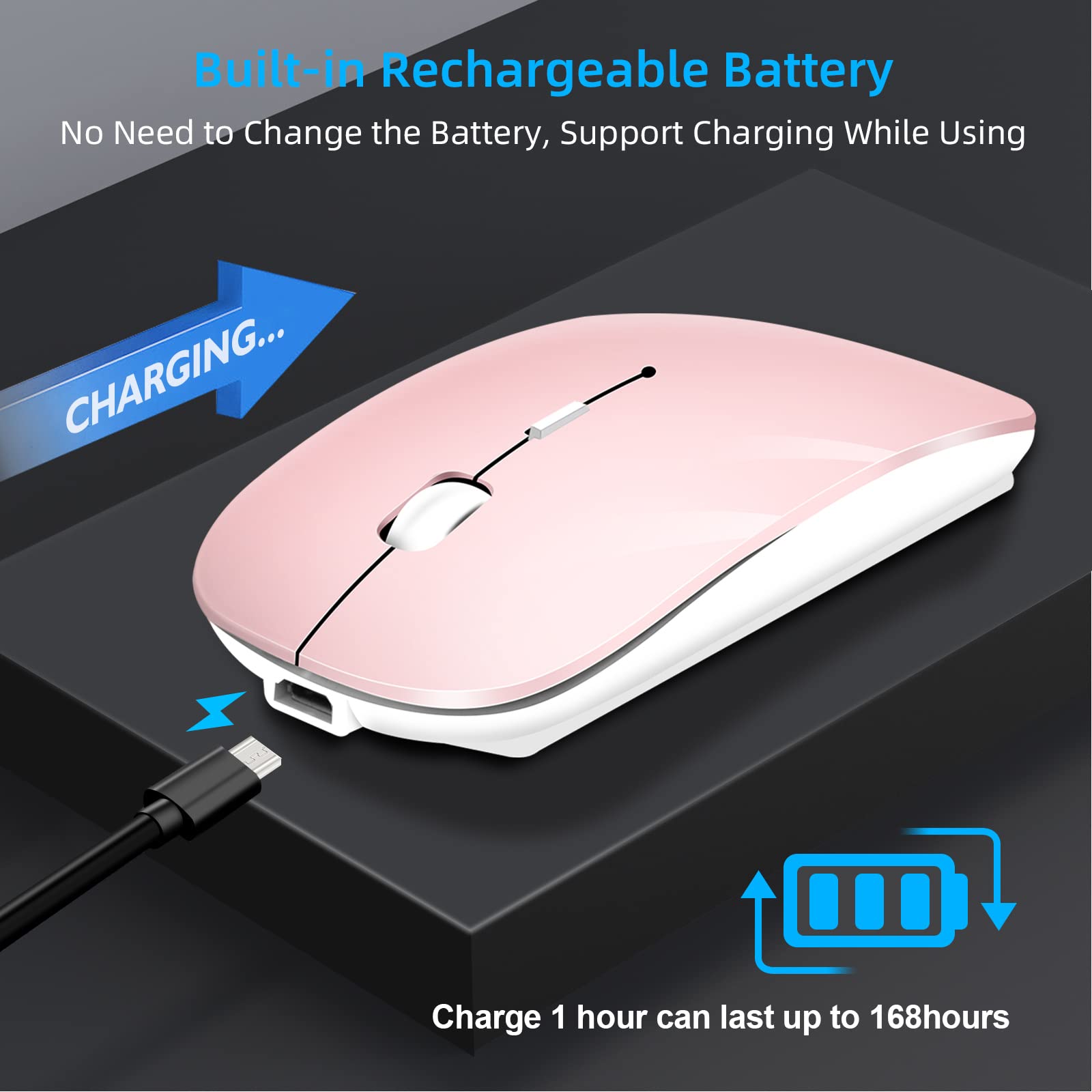 【Rechargeable & Energy Saving Design】The mouse built-in safe and durable rechargeable battery, Attached charging cable, without the need to replace the battery. Auto energy saving technology, The mouse will go to sleep after 10 minutes of inactivity to save power and provide long-term use. Click any button to wake up.