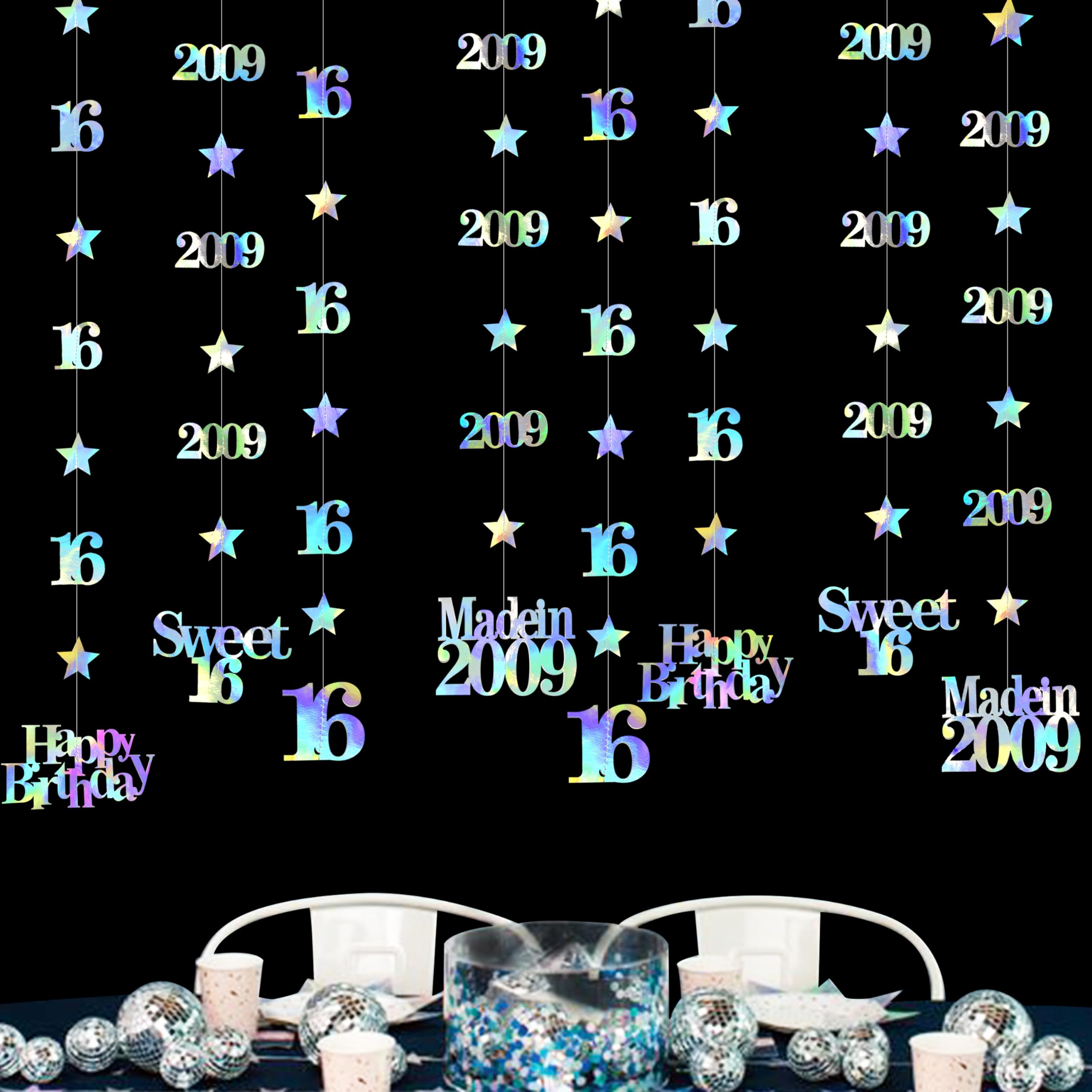 Our Iridescent Sweet 16 Happy Birthday Party Decorations Kit includes: ✓ 12 Pcs metallic star garland including number 16, Happy Birthday, Sweet 16 and Made in 2009 cutoutsWe have the perfect decoration party supplies set for the occasion: It’s perfect for: ► Sweet 16 decorations ► Sweet 16 birthday decorations ► Sweet 16 birthday decorations for girls ► 16th birthday decorations for boys ► Cheers to 16 years decorations ► Sweet 16 party decorations ► Hide the car keys party decorations ► Made in 2009 party decorations ► Vintage back in 2009 party decorations ► Bridal shower ► Engagement ► Anniversary ► Wedding Parties! Our vintage back in 2009 happy birthday party decorations is ready for its close up - we can't wait to see what memories you create! Have fun!