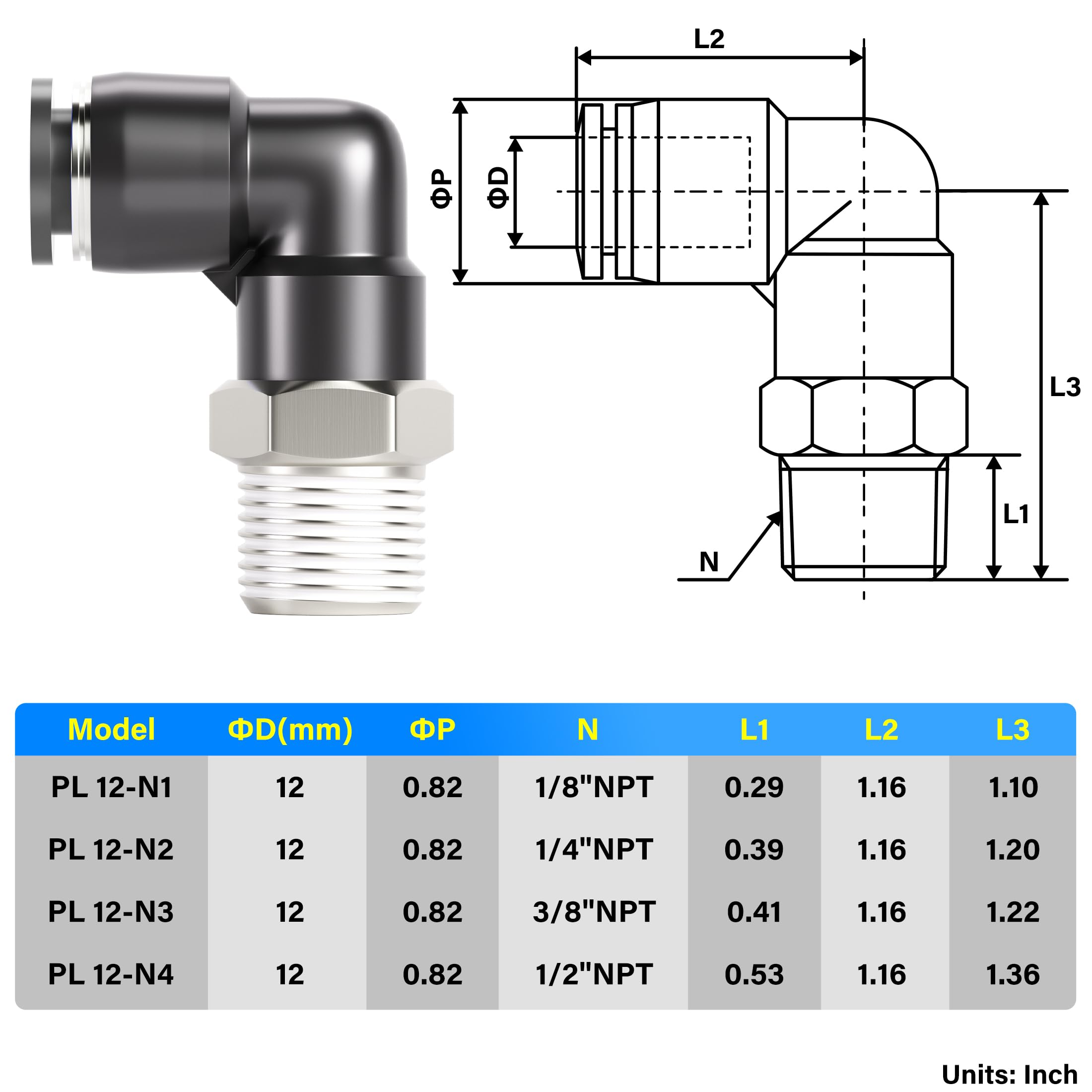 【Size】12mm Tube OD x 1/2" NPT Thread