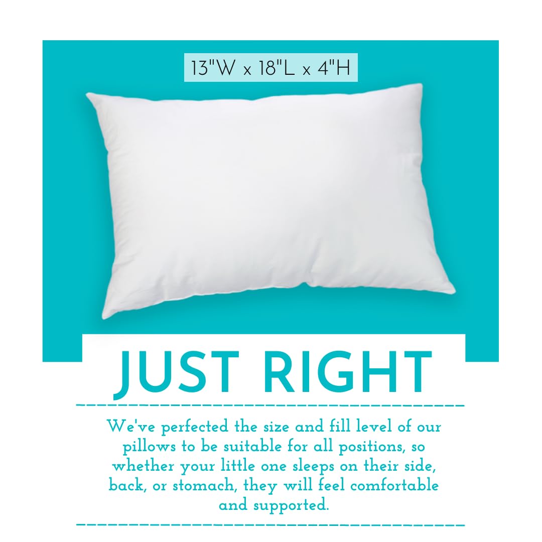 13" x 18" Toddler Travel Pillow - This snugly, take-it-everywhere he or she goes small pillow is THE perfect size and softness for your toddler! Our children's pillows are just right for toddler beds too!