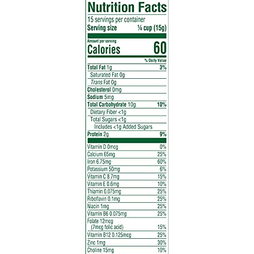 NUTRITIOUS: This organic baby food has 14 grams of whole grains per serving, 60% of the daily value of iron, 30% of the daily value of zinc, 25% of the daily value of vitamin B12