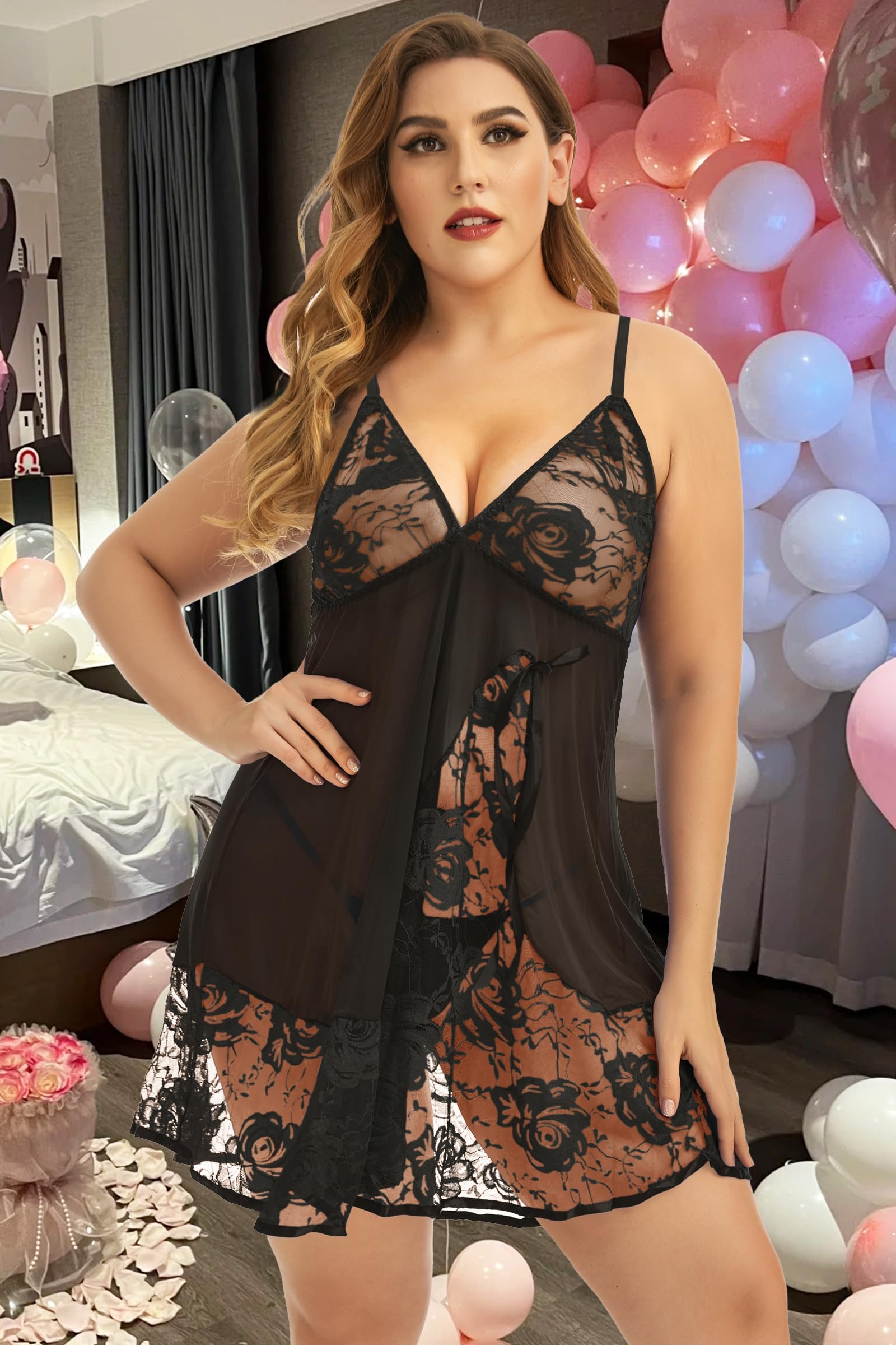 Oversized lingerie comes in lace cup, adjustable shoulder straps and attractive babydoll design