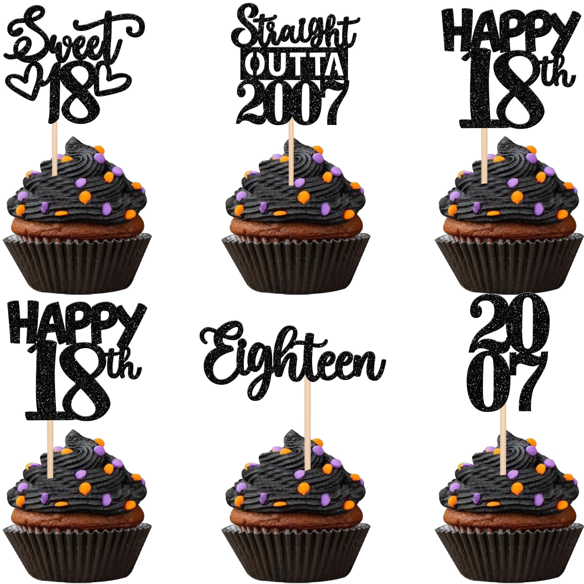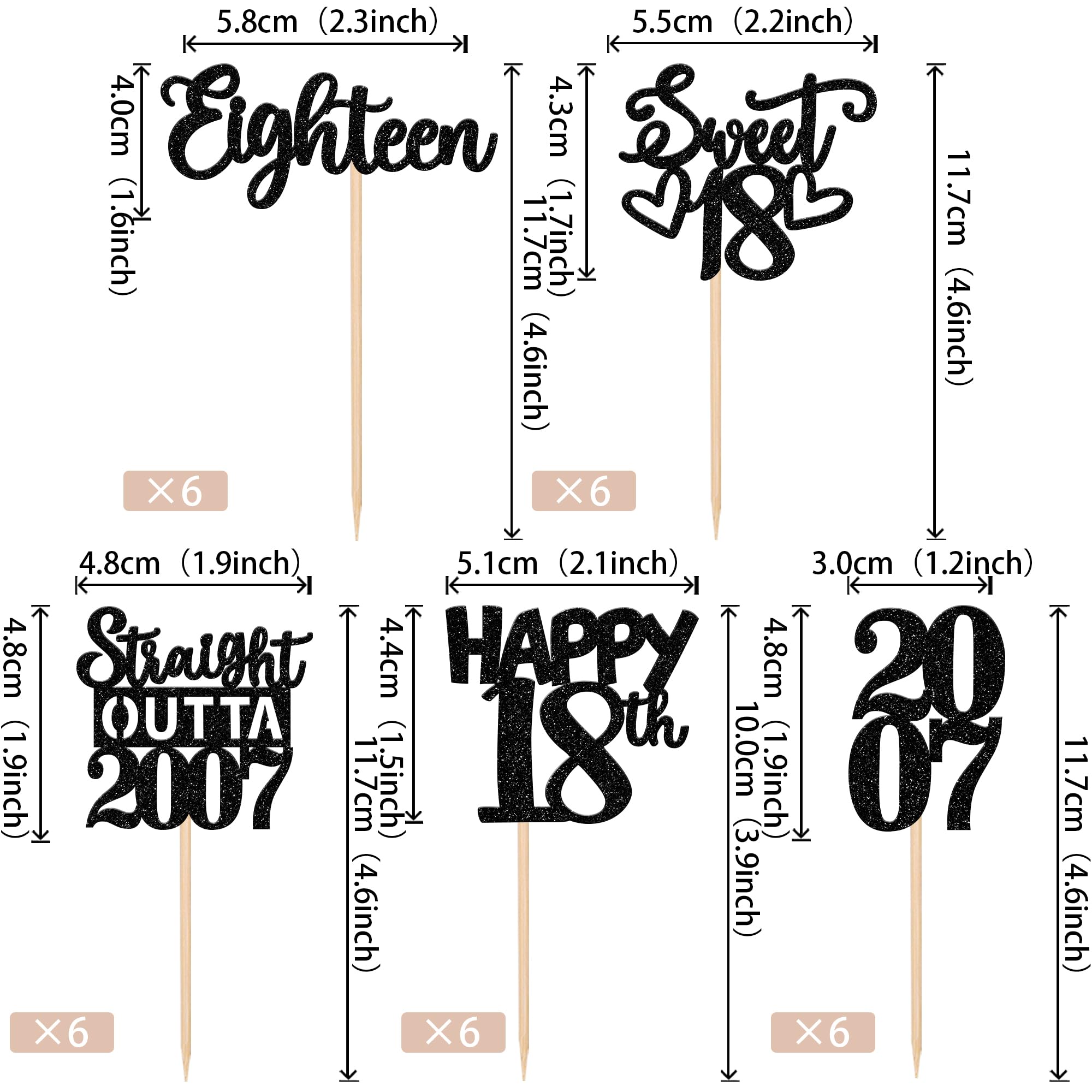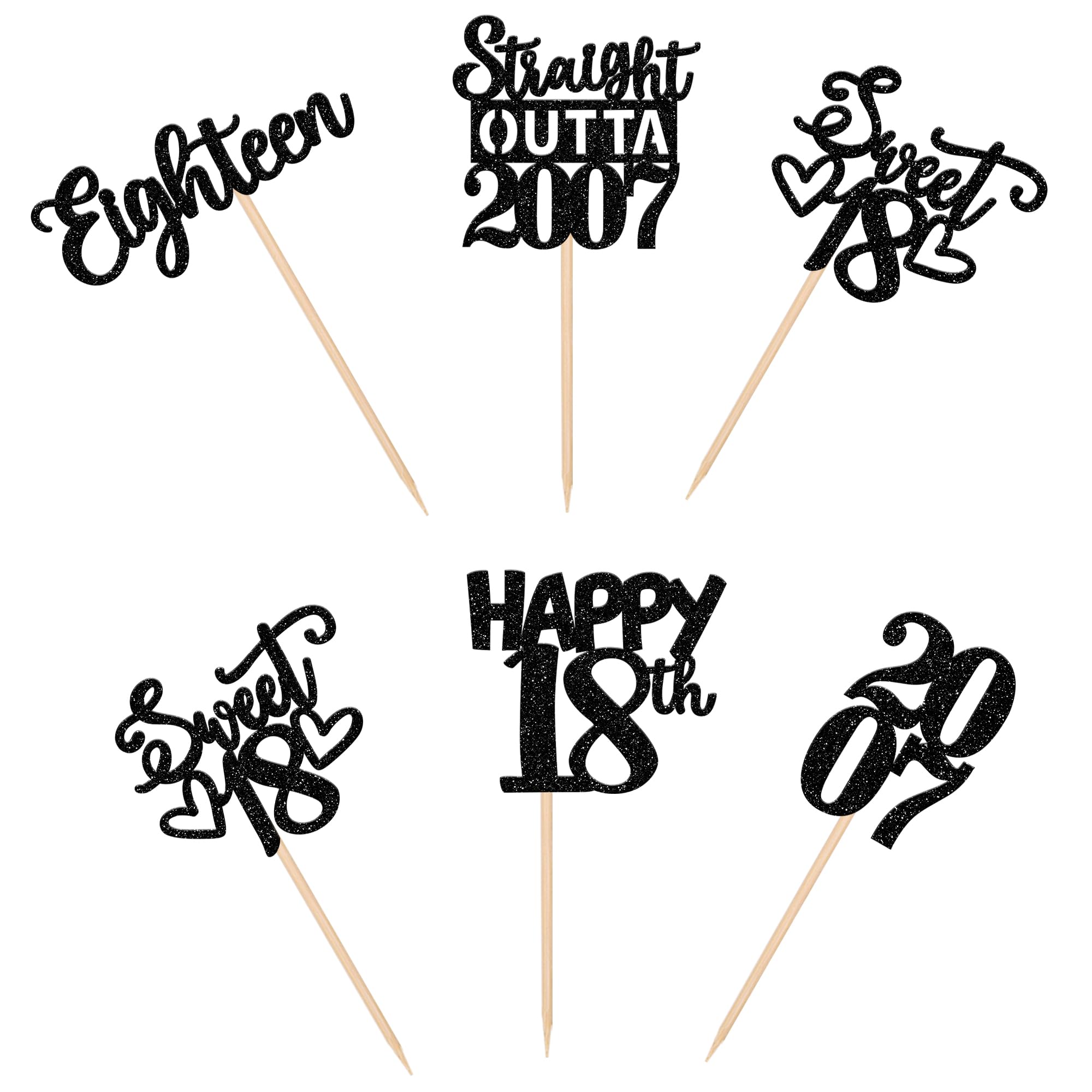 Straight Outta 2007 Cupcake Toppers for Happy 18th Birthday Anniversary Party Cake Decorations Supplies Perfect for happy 18th bithday theme party, straight outta 2007 theme party, 18th wedding anniversary theme party,cheers to 18 years theme party cupcake decorations supplies. Pack of 30 pcs,6 pcs of each design The size is 2.3*4.6/2.2*4.6/1.9*4.6/2.1*3.9/1.2*4.6 inch ( with stick ) Made of high quality paper card stock, thick and thick and sturdy. These cupcake toppers are single glitter, the back is white, and they are intended for decoration only, please do not put them in oven or microwave. If the item you received has any defects, please contact us immediately. we will deal with it within 24 hours.
