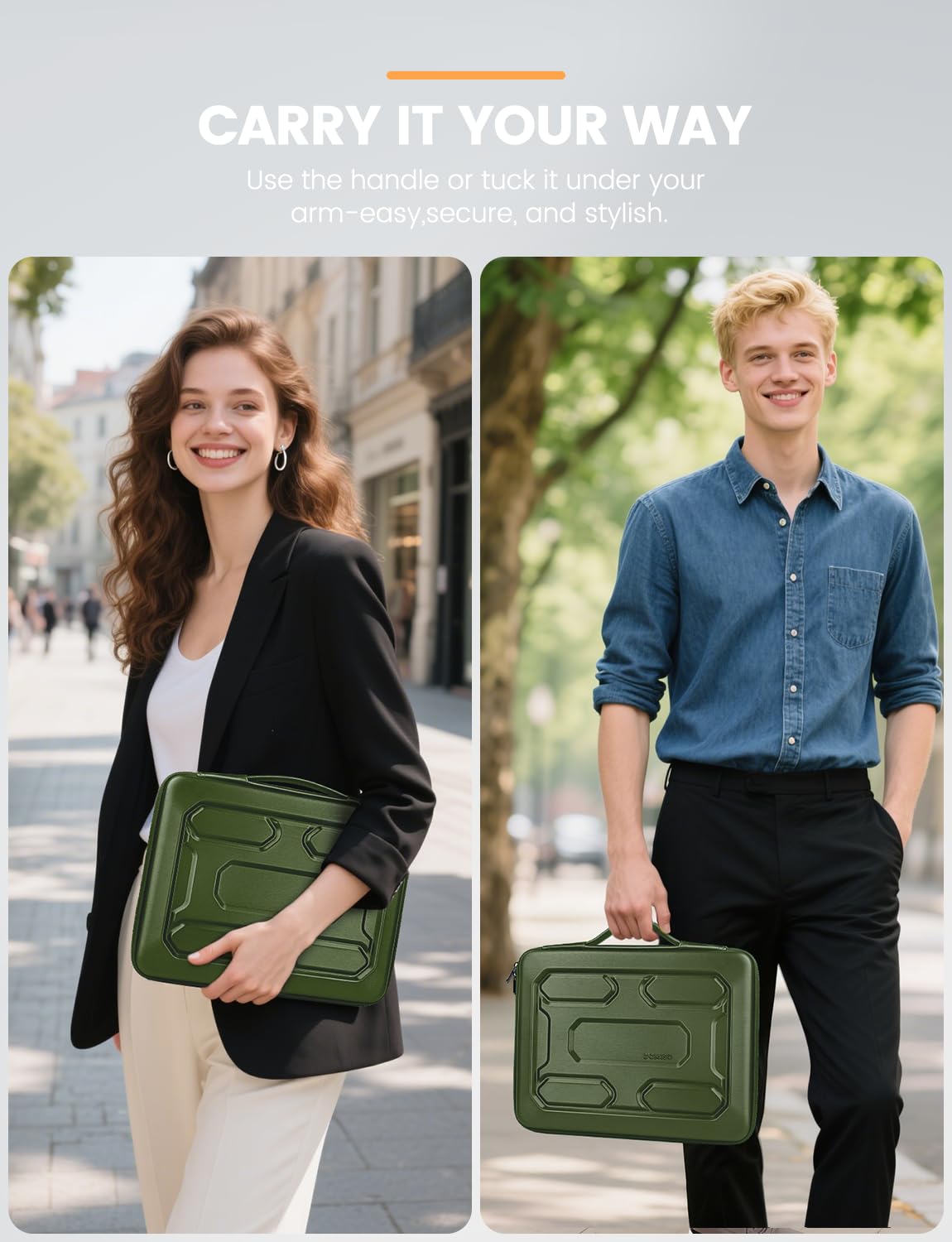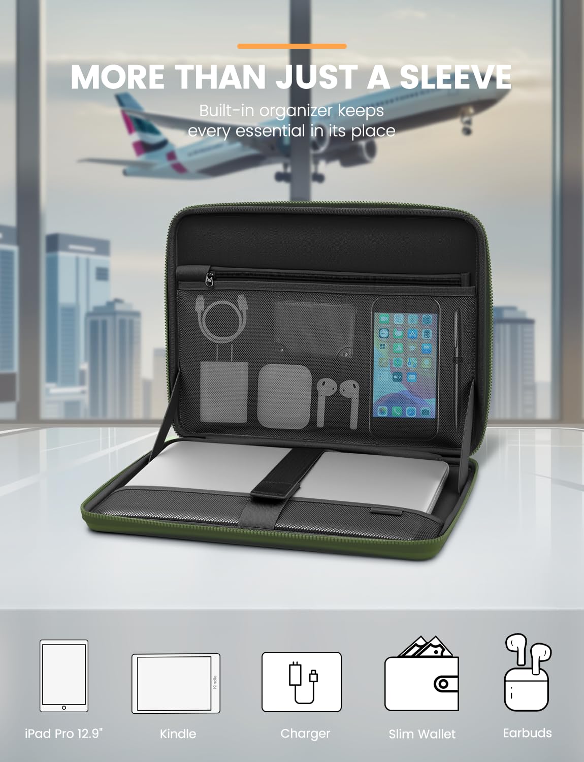 Built-In Bump Protection : Built with a thickened EVA hard shell and soft foam interior, this sleeve absorbs daily knocks and unexpected drops with ease. Whether it's shoved in a crowded backpack or tossed onto a TSA tray, your laptop is cushioned on all sides. It's perfect for frequent travelers, commuters, and students who demand impact protection without bulk.
