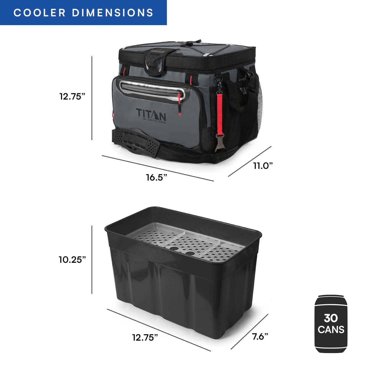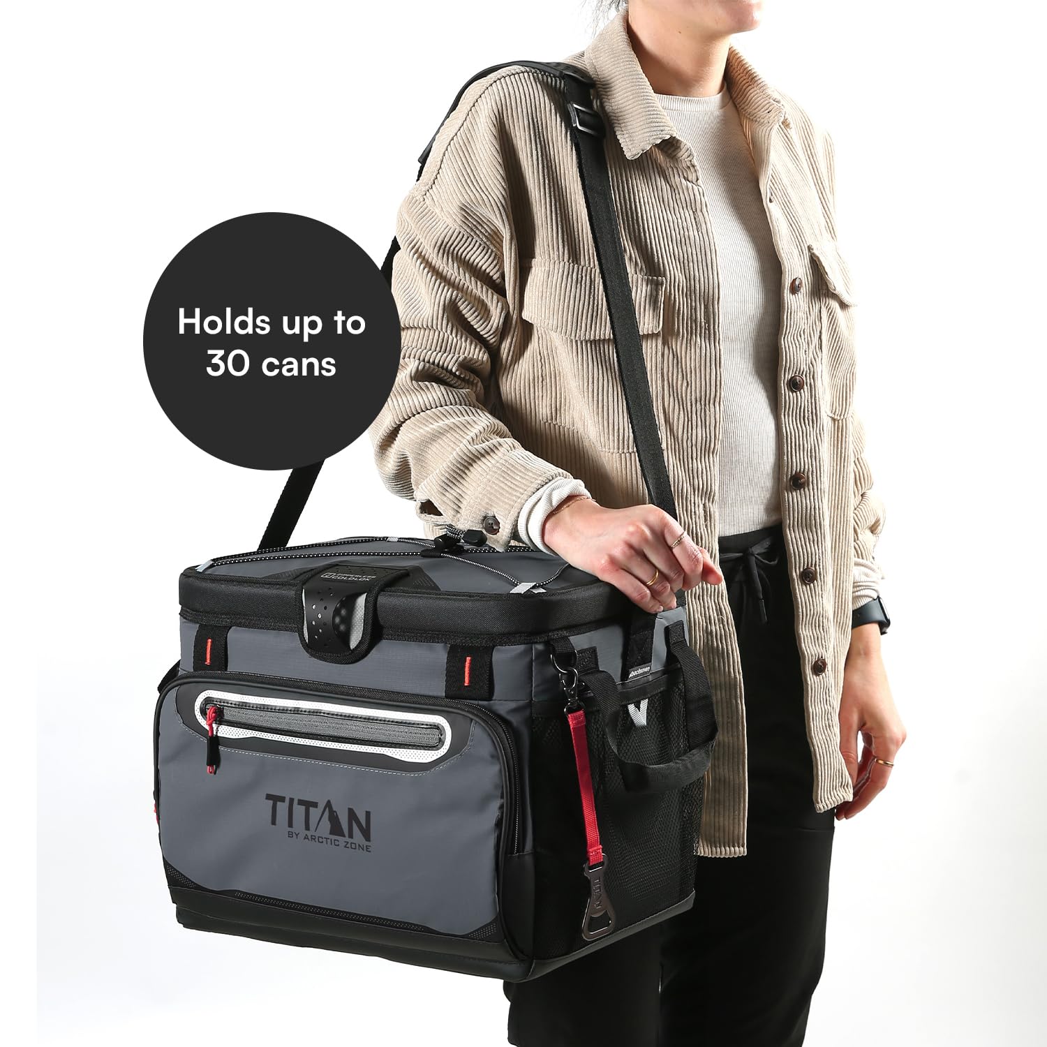 The Arctic Zone Titan Deep Freeze Zipperless Hardbody Cooler holds 30 cans and features a Zipperless lid for quick access to food and drinks. Deep Freeze High Performance Insulation with a radiant heat barrier provides long-lasting cold and is perfect for storing ice for up to 3 days. The cooler includes a removable HardBody Liner with SmartShelf that allows you to separate hard items from soft so that sandwiches and other soft foods don't get crushed. If you need more space, the SmartShelf easily removes to provide one large compartment. The cooler features a tough, water and stain-repellent exterior for easy cleaning and an adjustable Backsaver Shoulder Strap with an anti-slip shoulder pad that centers load weight for carrying comfort. The Arctic Zone Titan Deep Freeze Zipperless Hardbody Cooler is perfect for keeping food and drinks cold no matter where you go!