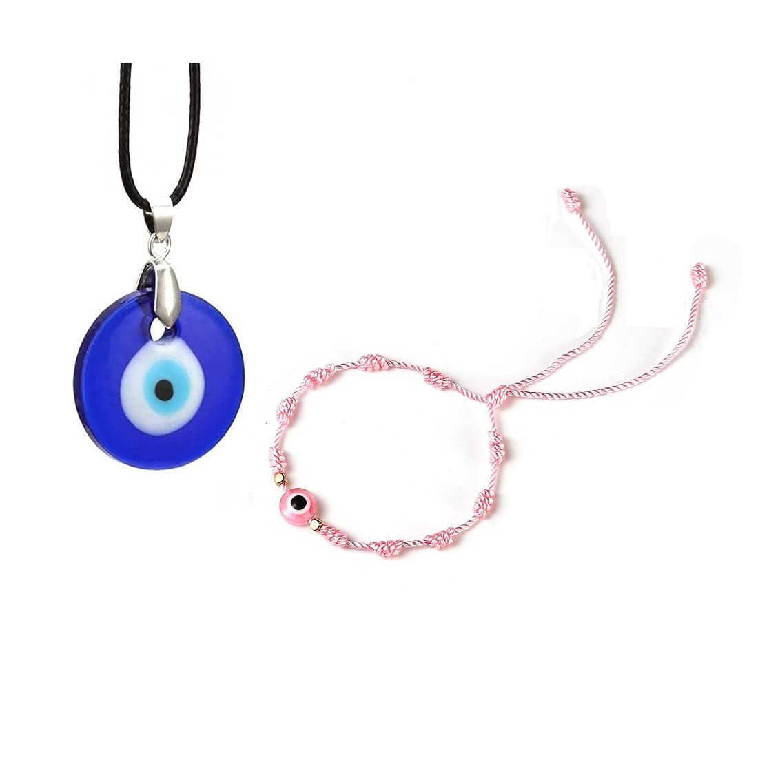 Package includes:one piece the pink evil eye bracelet,and one piece the blue glass evil eye necklace.