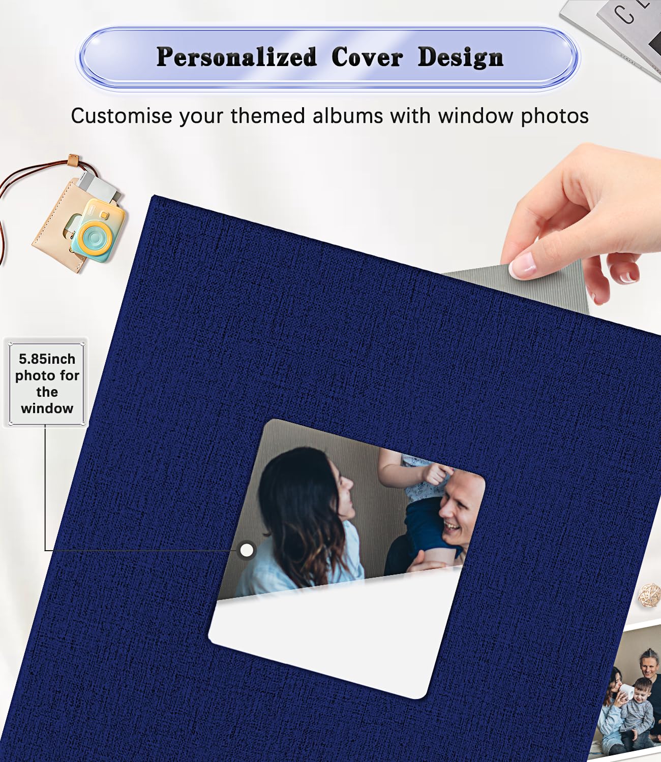 💖 Exquisite Window Design: This 4x6 photo album cover is wrapped in high quality linen, the classic linen cover not only adds vintage sophistication, but also ensures durability and protects your precious photos.The cover of the album has a flexible openable window with replaceable window photos (5.85 inch), customised to change your personal theme album.